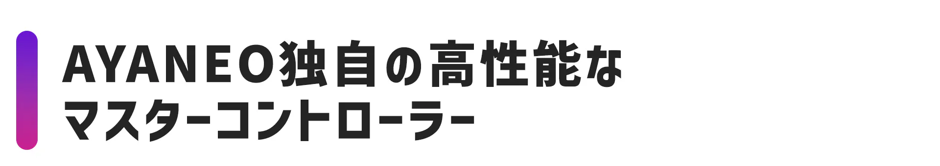 プロフェッショナルコントローラーに匹敵する、MASTERコントローラーを採用。Windows ハンドヘルドコントロール体験を再定義。8つの機能と6つの特許により、プレイヤーにマスターレベルのコントロール体験を提供します。