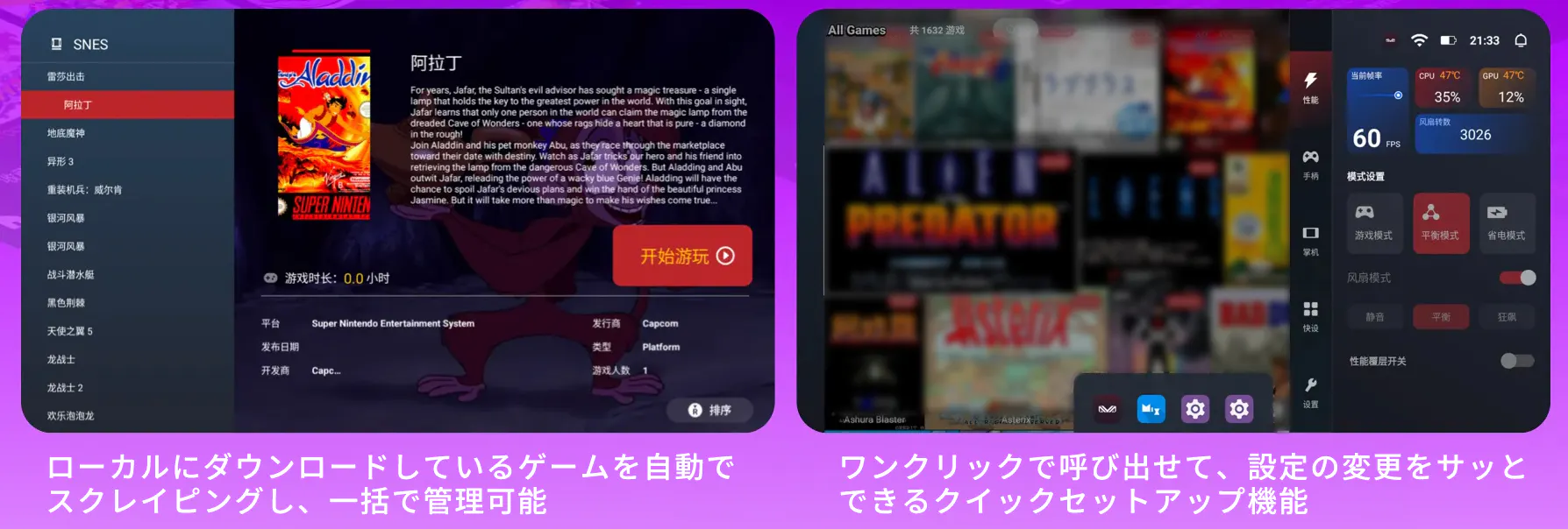 コントローラー対応のゲームはそのままコントローラー操作が可能です。またコントローラーに対応していないゲームもボタンのマッピング(割り当て)をすることもできます。