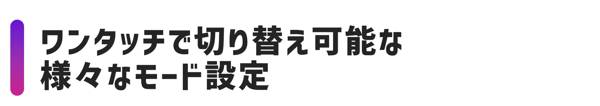サイドに配置しているボタンひとつで、自由にパフォーマンスをスイッチング可能。ワンタッチで切り替えられることができるので、面倒な設定は必要なく、ゲームに応じてすぐに切り替えられます。