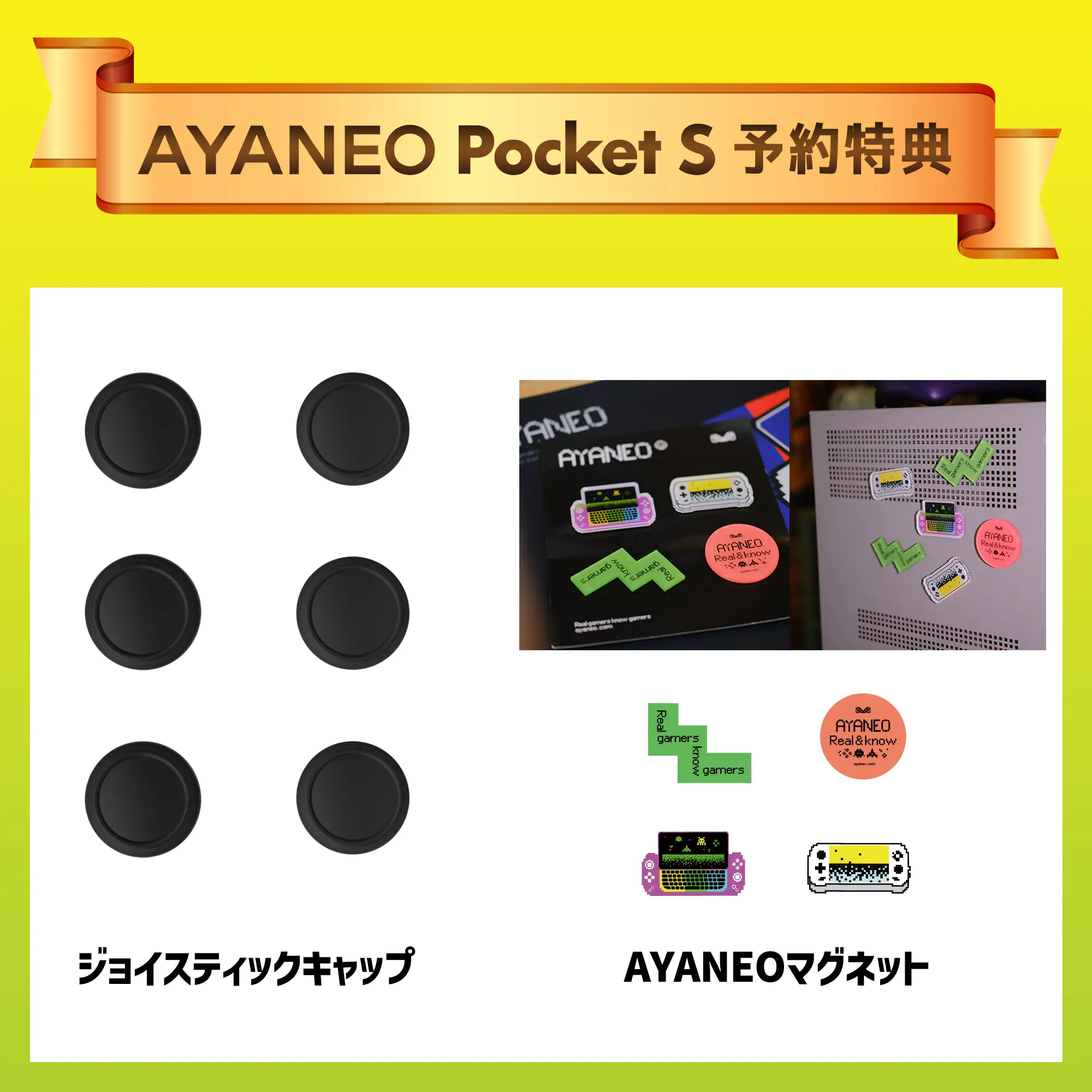 サポート特典として、専用ジョイスティックキャップとAYANEOオリジナルマグネットと付属させていただきます。すでに購入いただきましたお客様も対象となります。