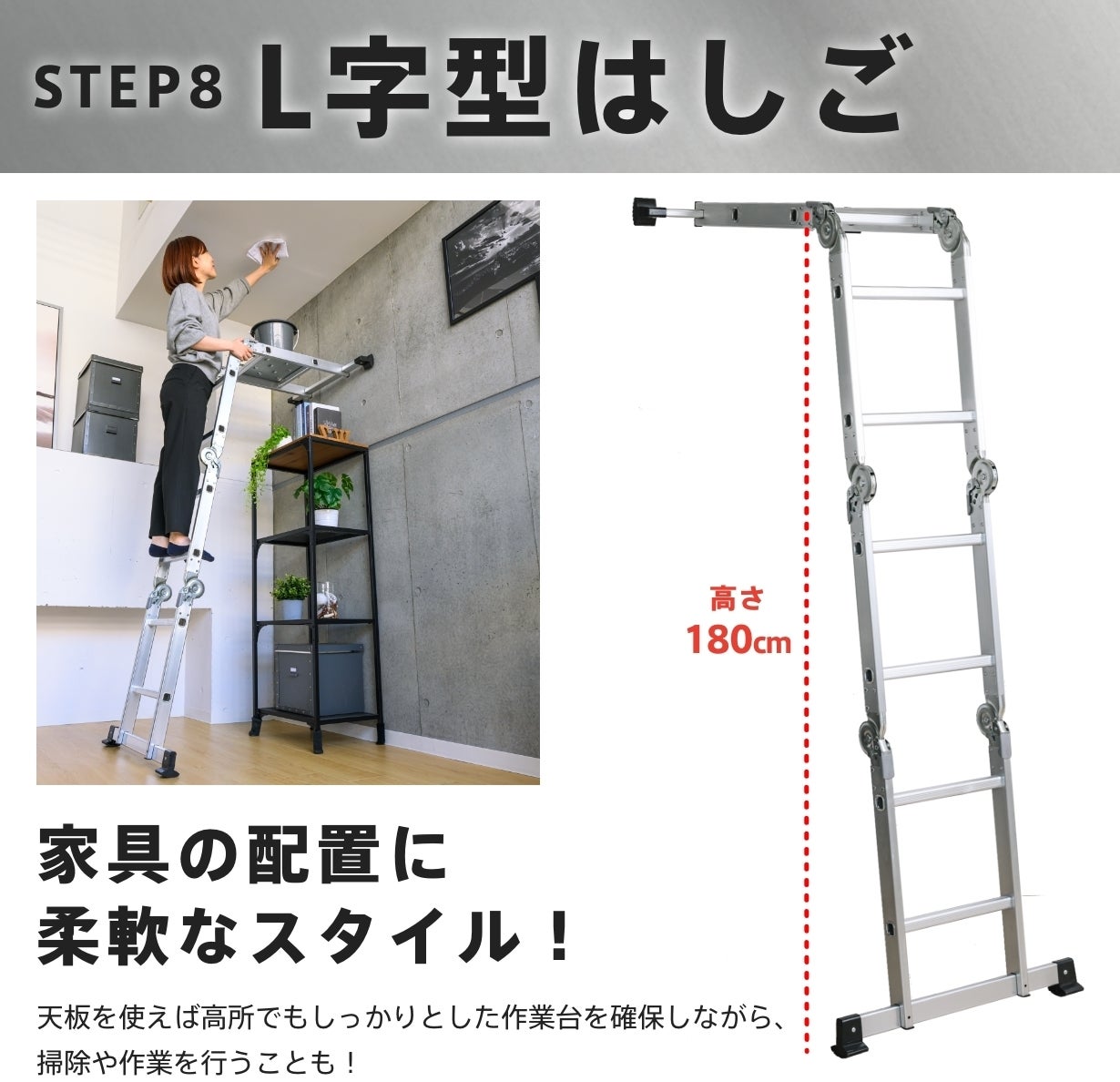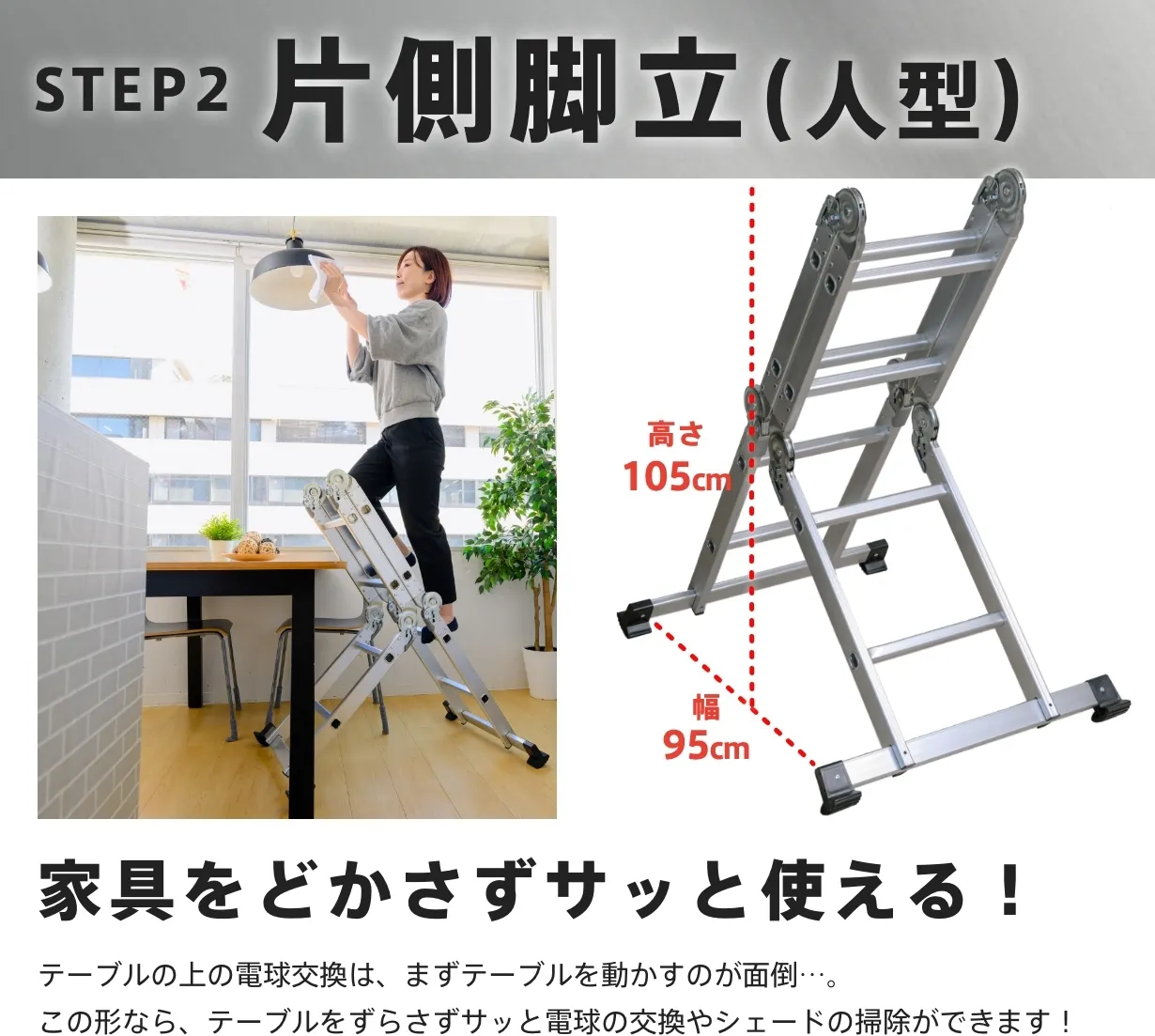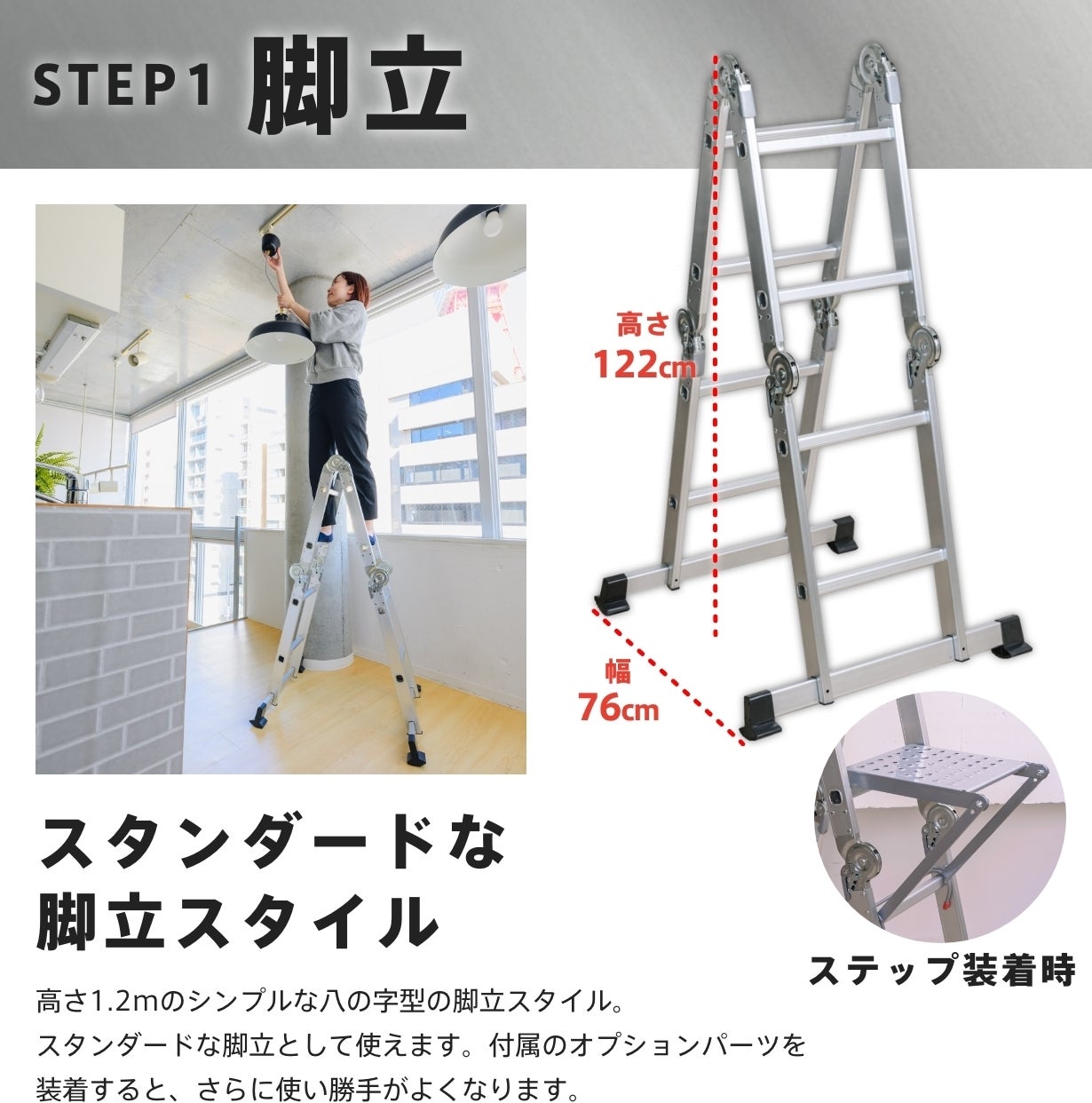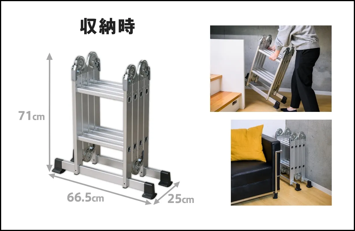 都会の狭小住宅やマンションでも、快適に使える多関節脚立です。
