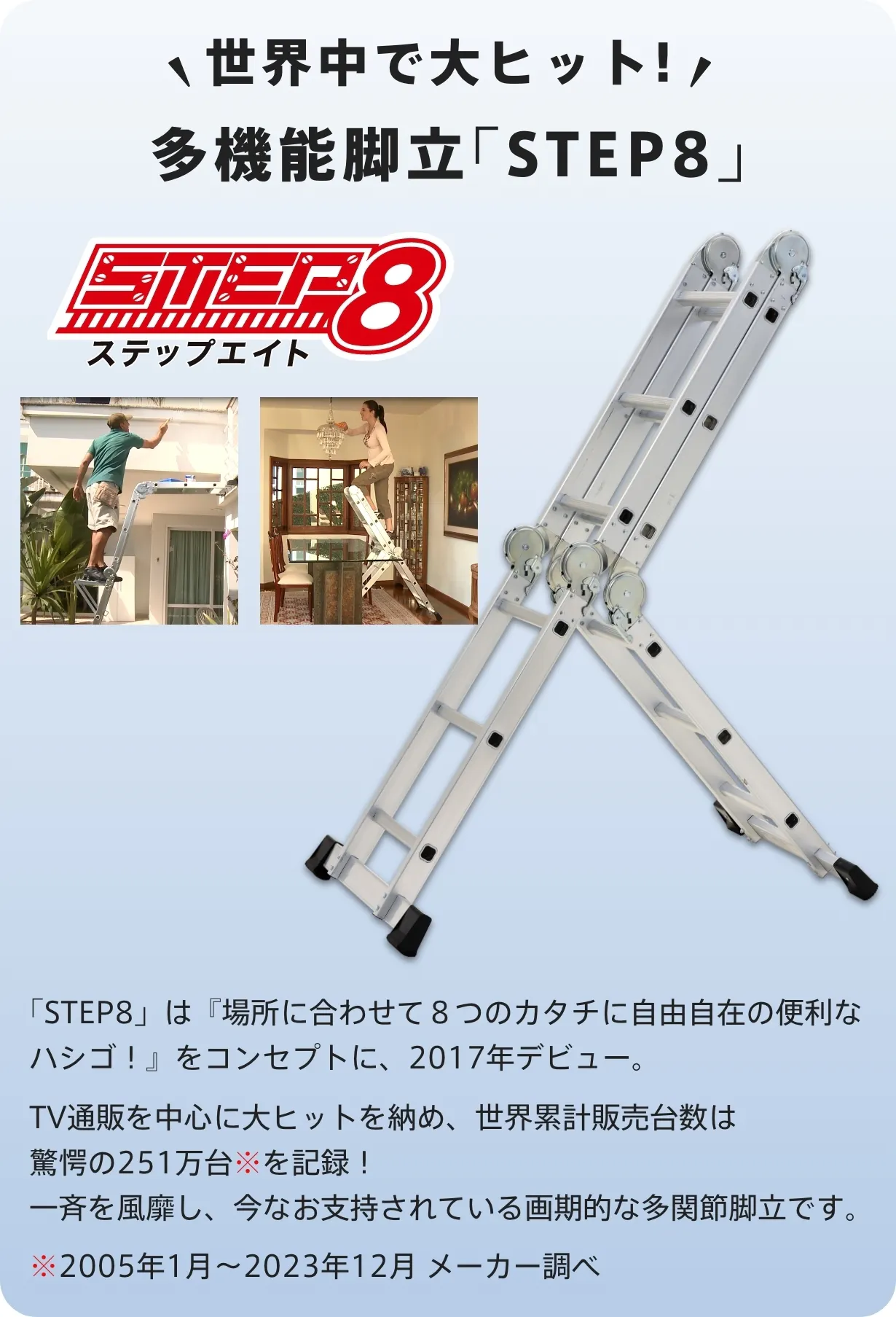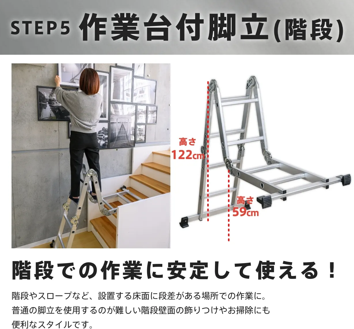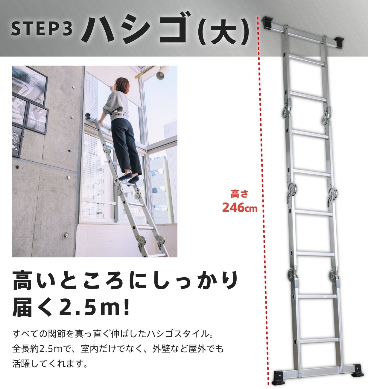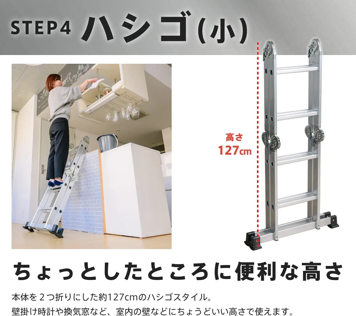 都会の狭小住宅やマンションでも、快適に使える多関節脚立です。