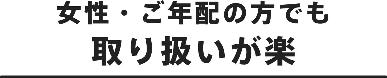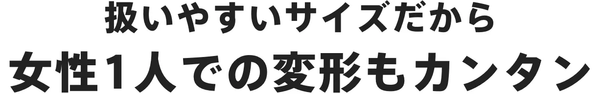マンションや狭いお部屋、限られたスペース、荷物の多い倉庫、ガレージなどでも使い勝手がいいサイズ感です。