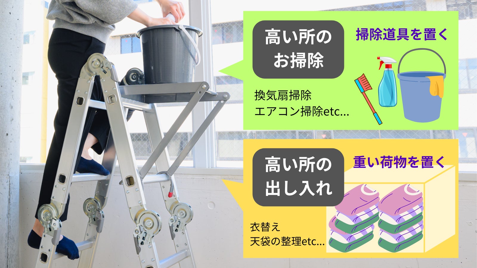 高い所に物を置いたり取り出したりする時も、