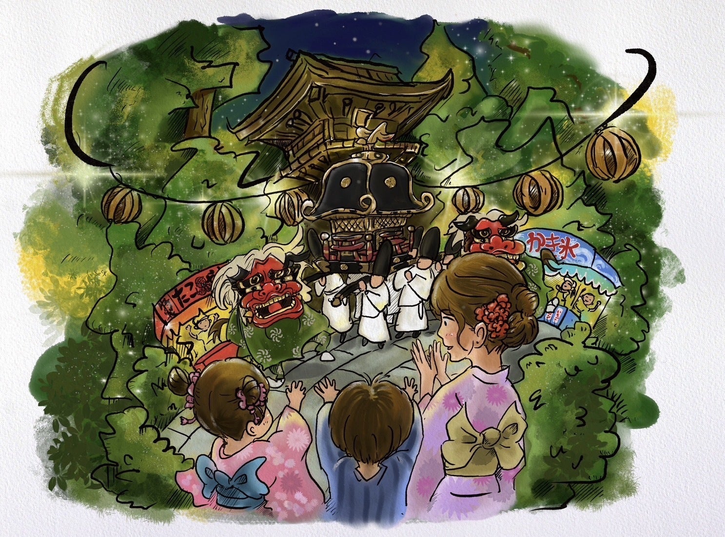 子供たちの記憶にのこる夜市が続くことを祈って イラスト:佐藤紘旗(トレパッソ)