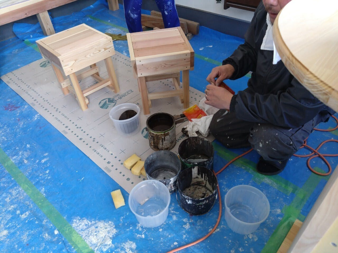 自分たちでつくった家具がよりきれいになっていくのは、簡単な作業でもうれしくなります。