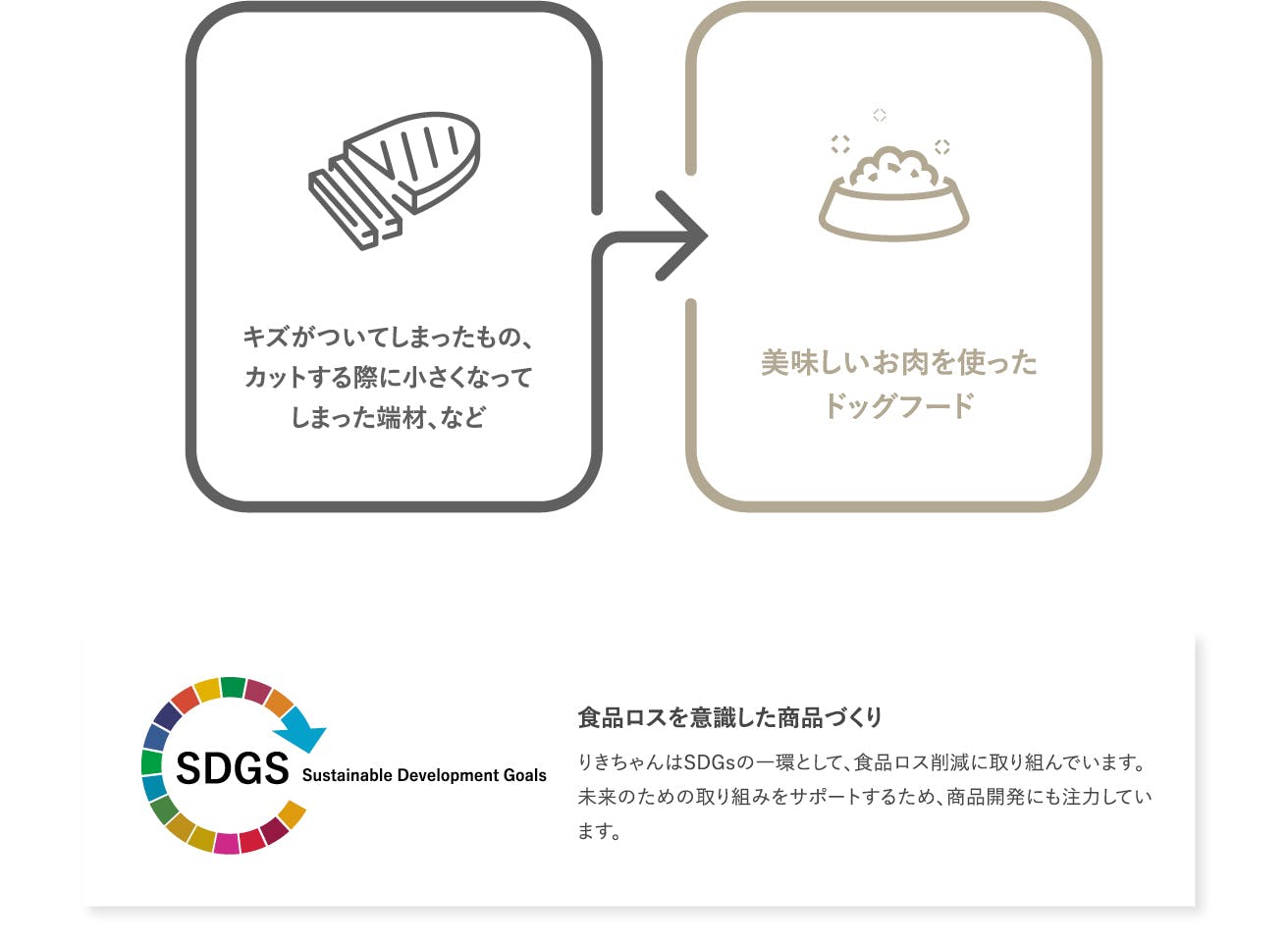 りきちゃんの代表は、かつて飼っていた愛犬「りきちゃん」にちなんで店名をつけた愛犬家です。お客様からは、『自分たちだけが美味しいものを食べて、愛犬にも同じくらい美味しいものを与えたい』という声を多くいただきました。そこで、SDGsの観点から肉の端材を活用し、美味しいお肉を使ったペットフードを企画できないか?これにより、愛犬にも美味しいものを提供できるのではないか?と考えました。