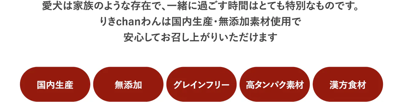 愛犬は家族の一員であり、一緒に過ごす時間は特別なものです。りきchanわんでは、愛犬との幸せな時間を支えるため、安心で安全なペットフードを提供しています。