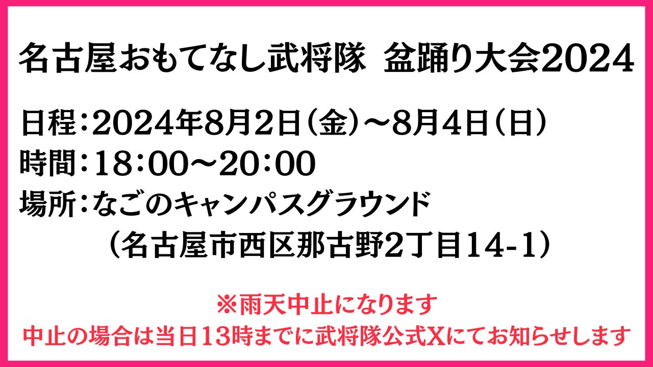 さらに昨年からは円頓寺商店街の「円頓寺七夕まつり」の開催中に「名古屋おもてなし武将隊 盆踊り大会」を開催することにより、街全体で大いに楽しめる盆踊り大会に進化を遂げた
