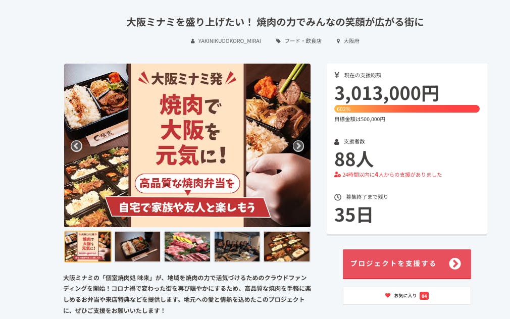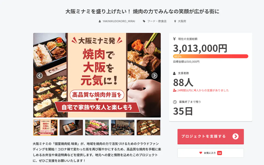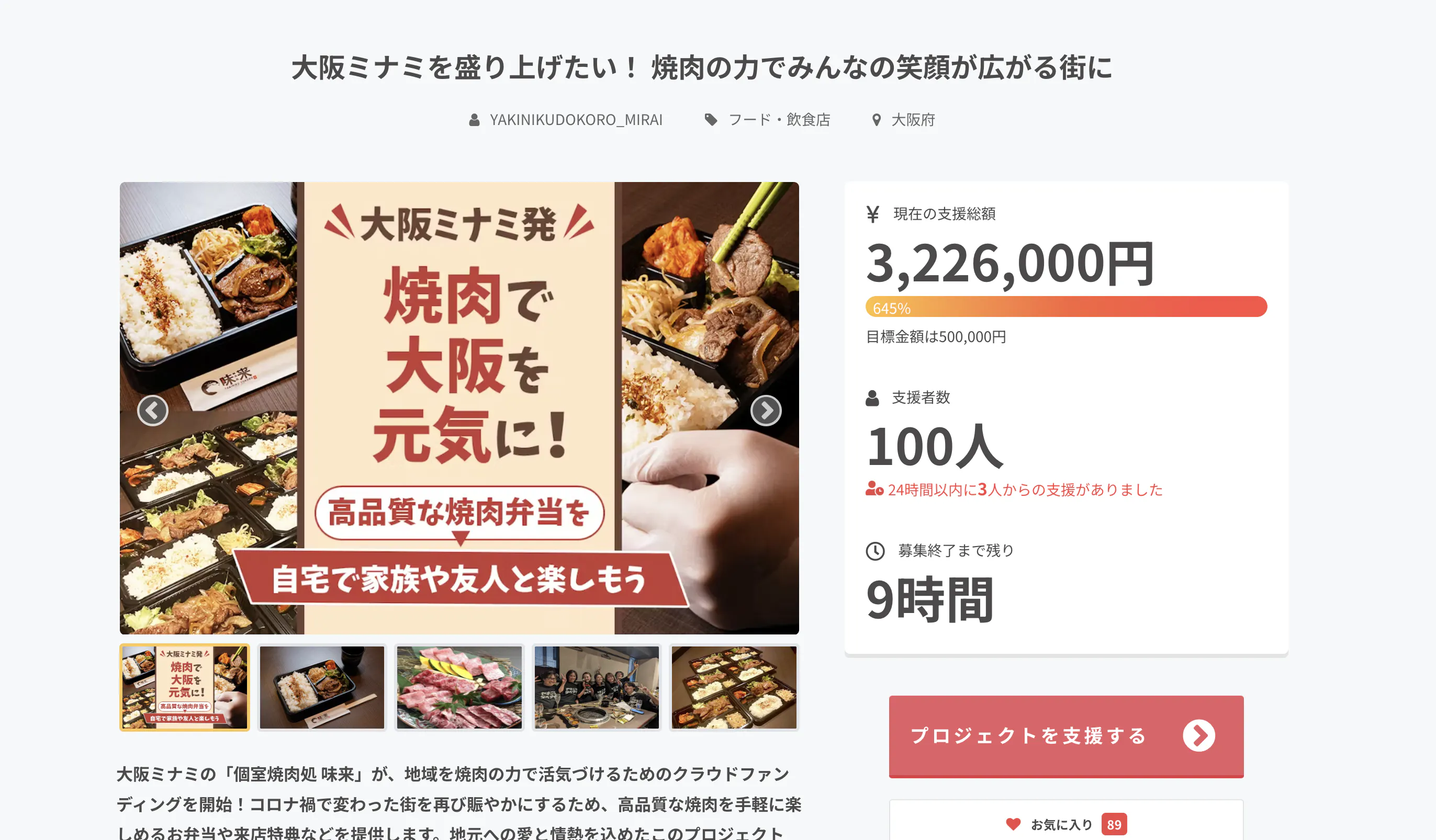 大阪で生まれ育った僕が、もっと大阪の街を焼肉の力で活気づけたい!という想いから、かねてからご要望をいただいていた「焼肉弁当」をメニュー化するため、クラウドファンディングに挑戦します!