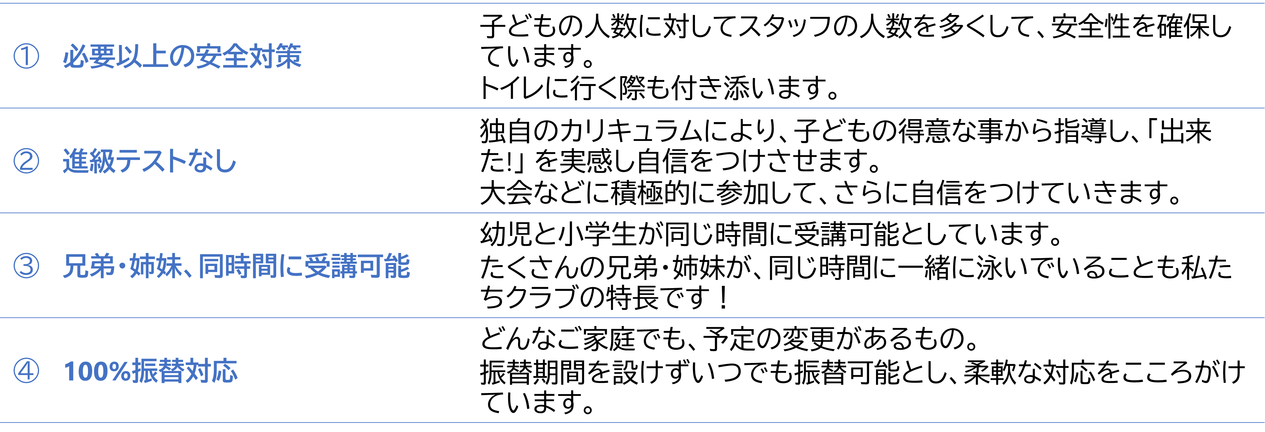 私たちクラブは、高い安全性を保ち、一人一人に合った指導を行っています。