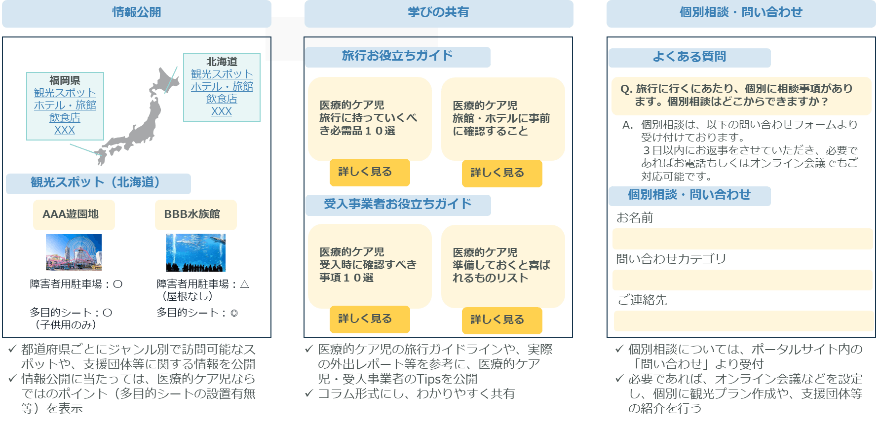 ご家族にとっては旅行に必要な情報をまとめて得ることができ、事業者にとっても、医療的ケア児家庭との接点を生み出すことができます。