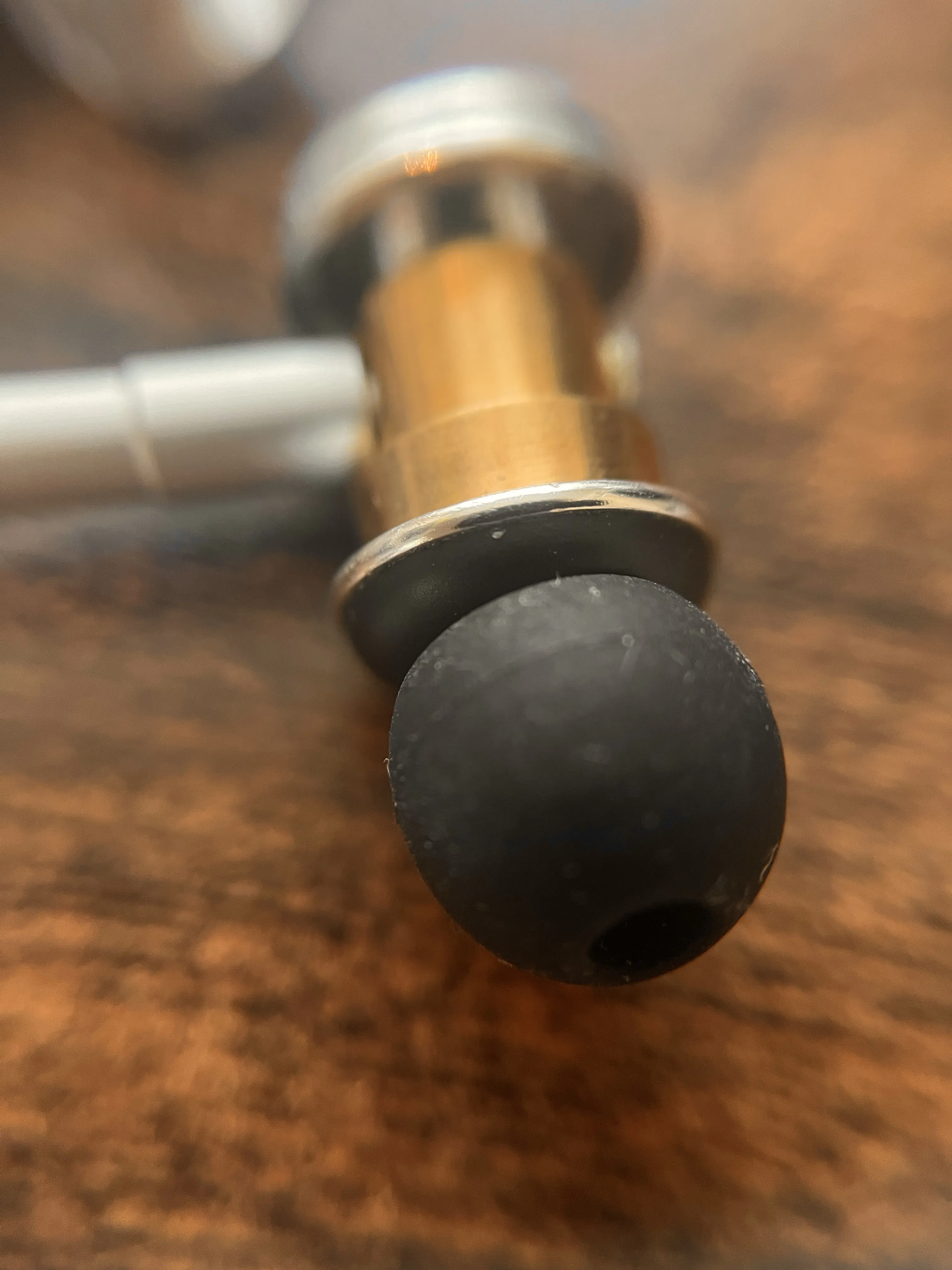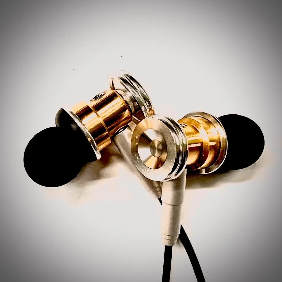 私たちは無線を使ったスピーカーではなく、「有線」の「イヤホン」でレコードを聴くことが一番良いと考えました。 イヤホンにはJAPAEAR 「斬shin」が最適と考えました。「斬shin」はイヤホン内部のドライバーと真鍮の筐体の両方を使って5-80KHzの広帯域音声出力を行います。可聴帯域を超える倍音を真鍮筐体で鳴らしてレコードの溝から解き放たれた「音楽」と「空気」の表現をします。
