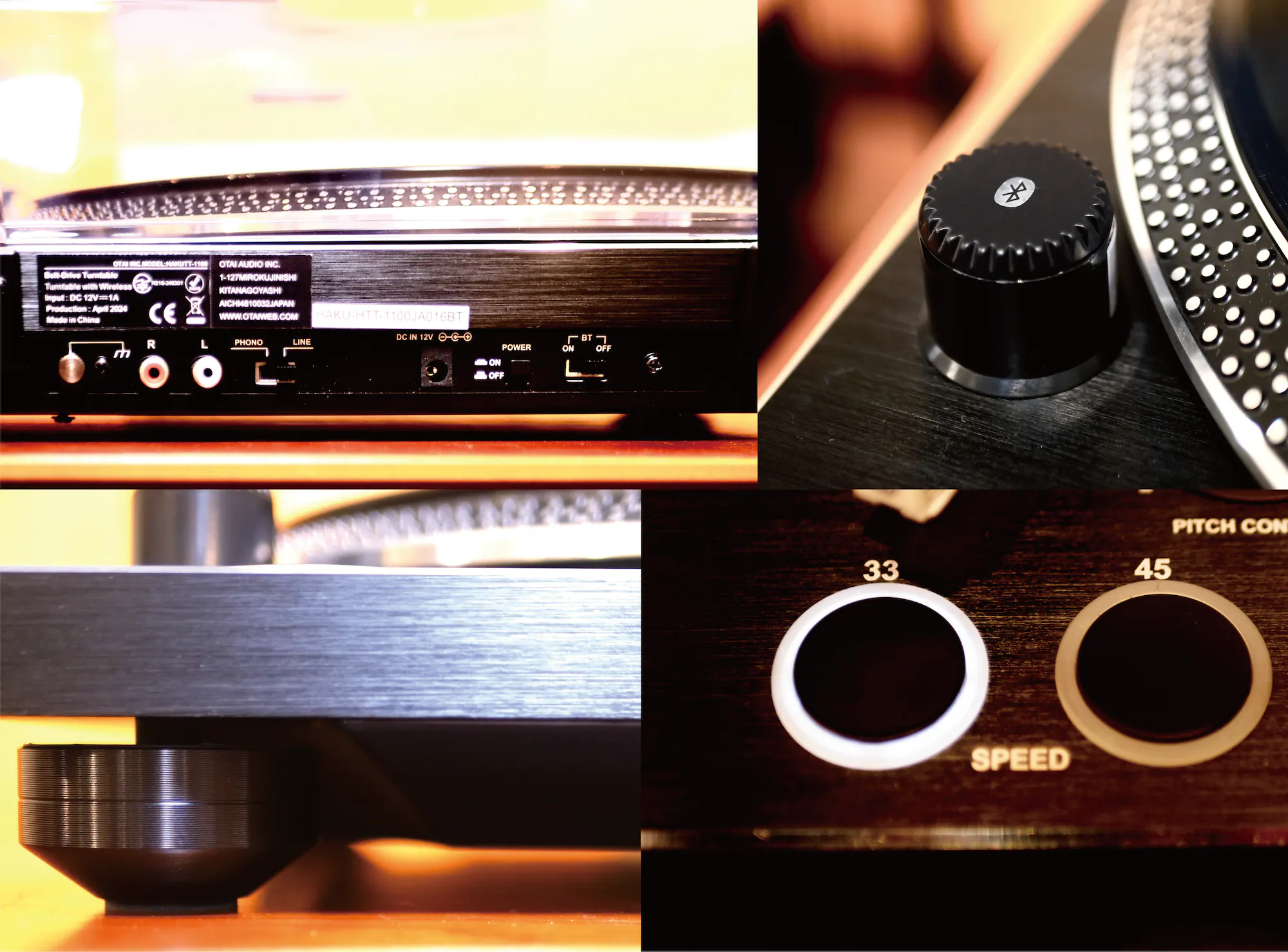 33/45 回転対応。45 回転EP 盤用アダプター同梱