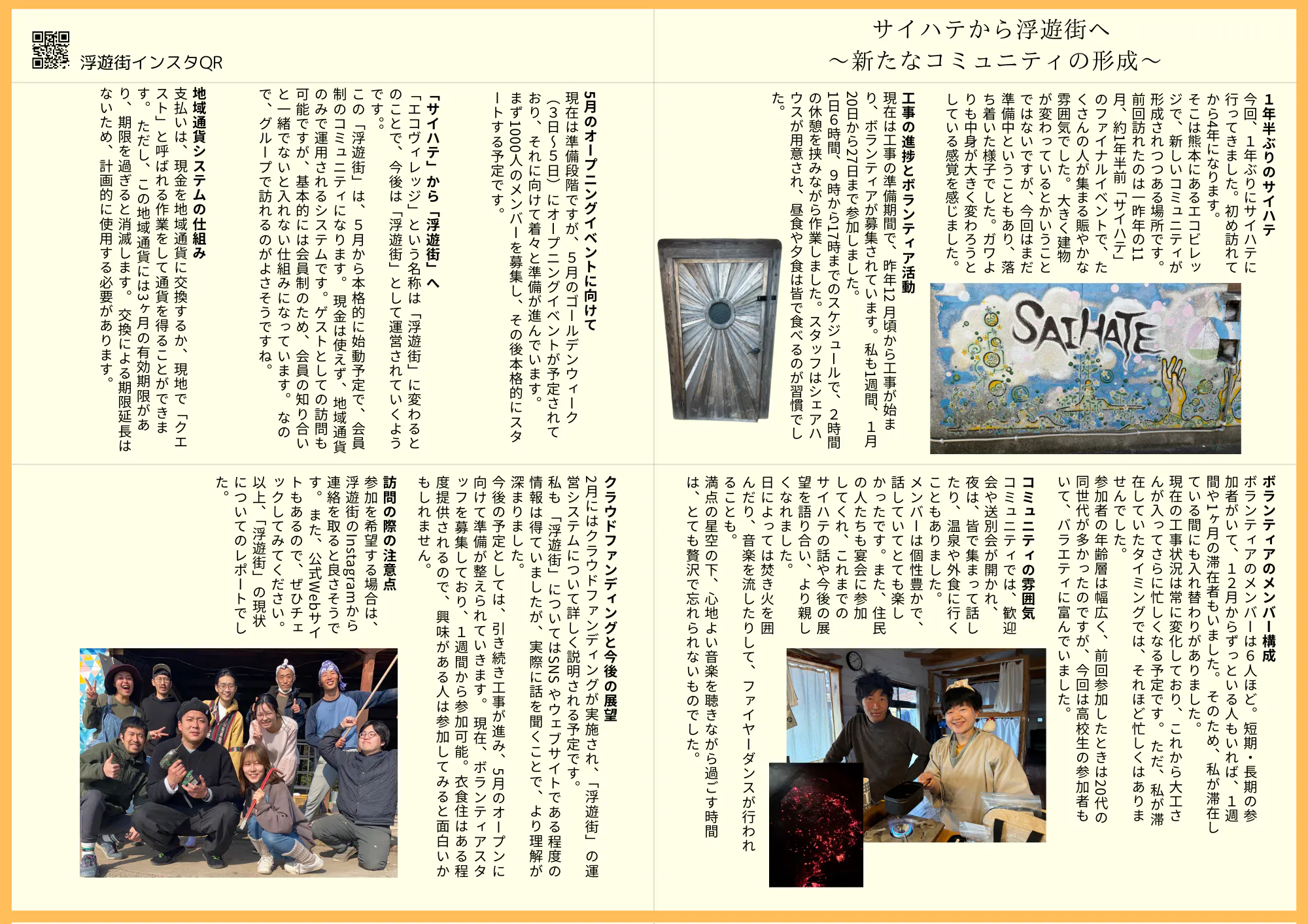 私自身、旅に出る前は社会の中で居場所を見つけられず、どう生きていけばいいのか悩んでいた時期がありました。 そんなときに出会ったのが、熊本の「サイハテ」というコミュニティです。 そこには、自由な暮らし方や、しなやかに生きる人たちがいて、「こんな生き方もあっていいんだ」と初めて知りました。