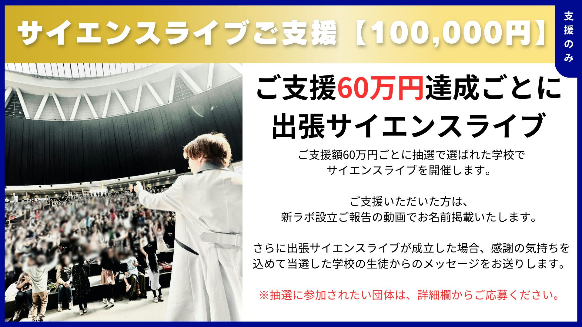 こちらの企画は、学校サイエンスライブへのご支援額が60万円に達するたびに1校ずつ増やしていきます。