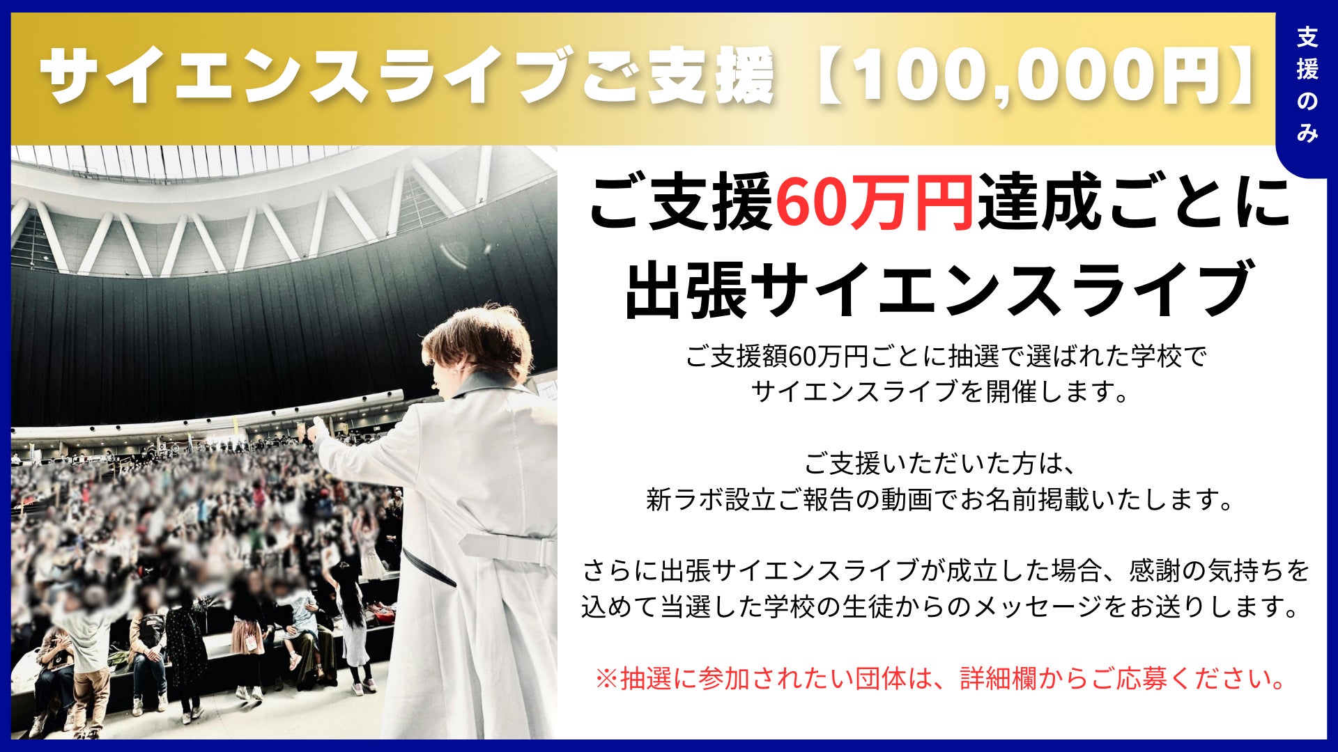 こちらの企画は、学校サイエンスライブへのご支援額が60万円に達するたびに1校ずつ増やしていきます。