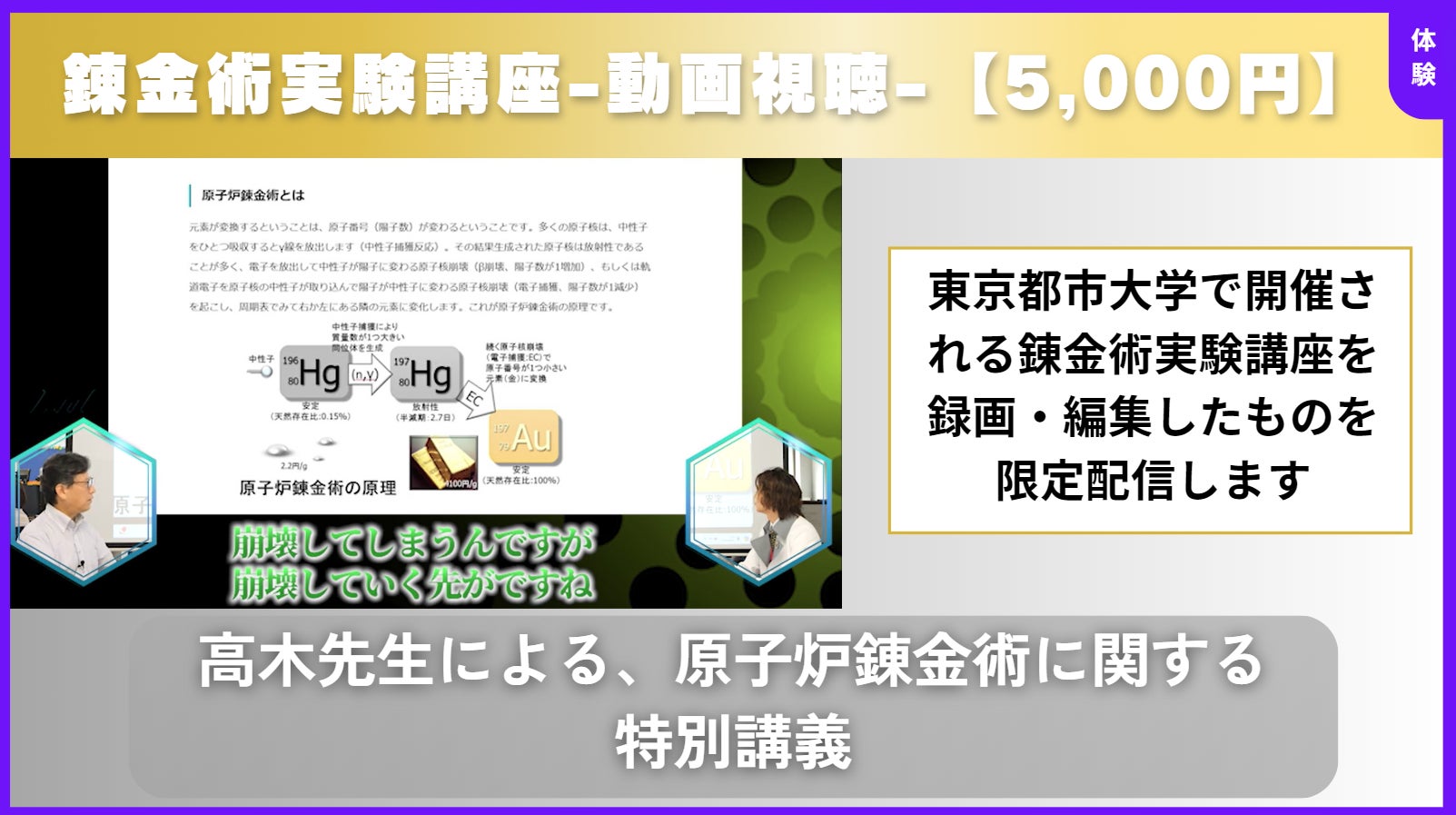 高木先生は水銀から金をつくる「原子炉錬金術」を15年前に発案した専門家で、現在はこの「核変換」技術を応用してがん治療に効く薬の開発にも取り組んでいます。