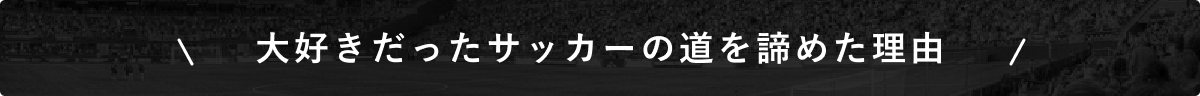 当時、高校でサッカーを続けたとしてもJリーガーになれる確率は0.2%に満たないと言われてました。「地元で優れていてもプロになれるのはほんの一握り...」。サッカーは大好きでも、それを生業としている将来が想像できなかった私は、プロになるという夢を諦め、自らのサッカー人生に幕を閉じました。