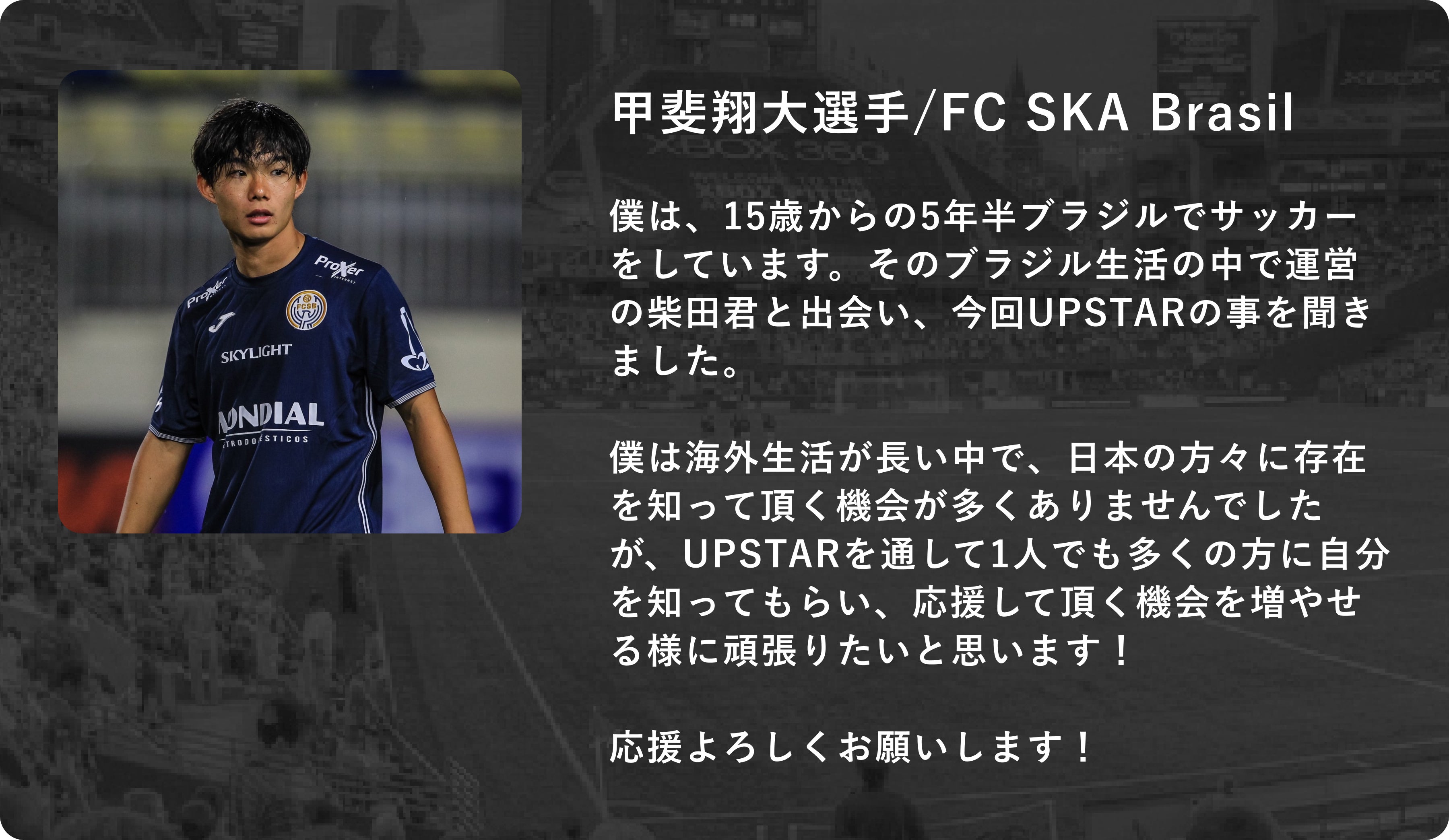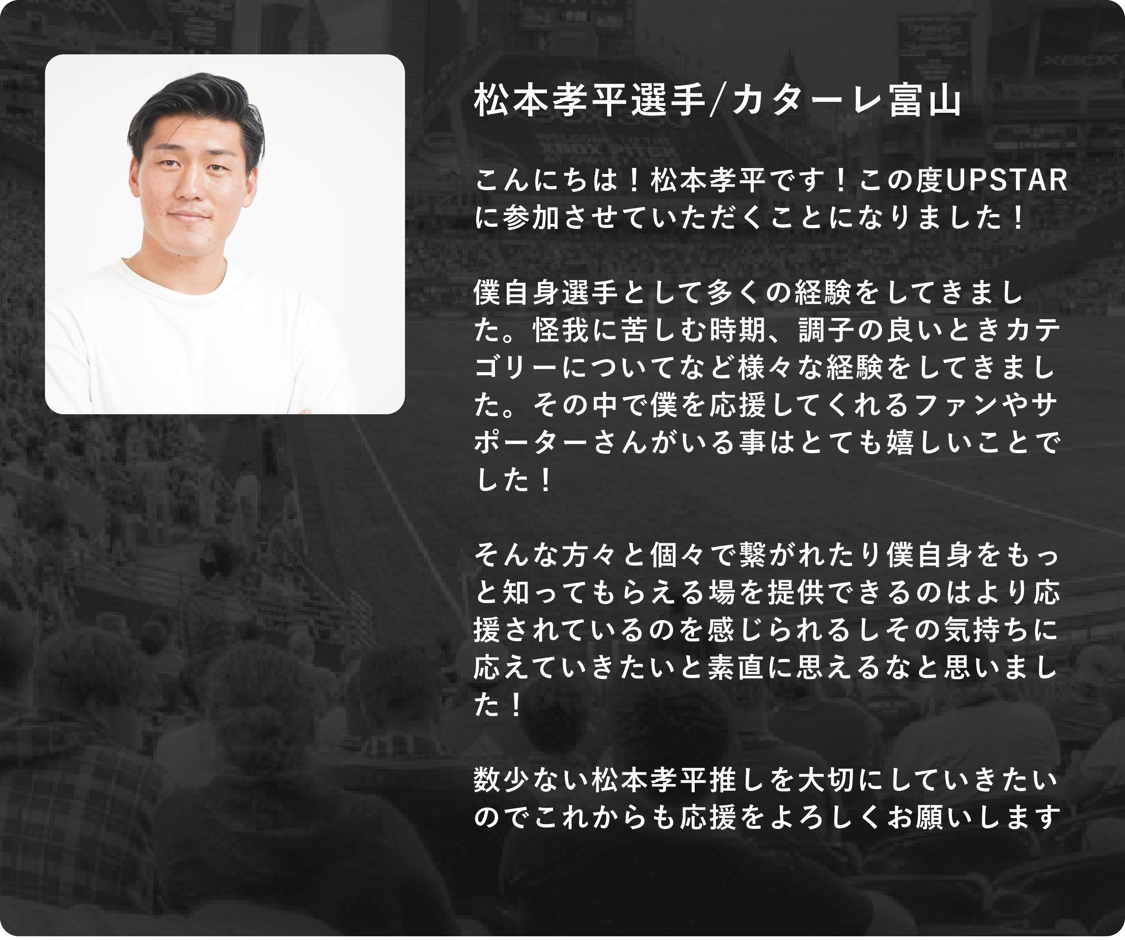 UPSTARにご興味を持っていただきました選手、関係者の方は、公式Xもしくは「板本大輝:hiroki_itamoto@emer.co.jp」までお問い合わせください。