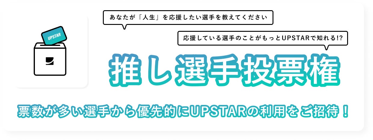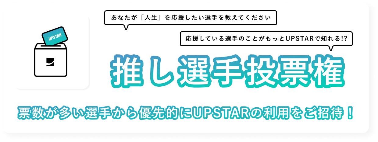 ・投票結果をもとに、選手に弊社から全力でご案内をしますが、UPSTARの利用を約束するものではございません。