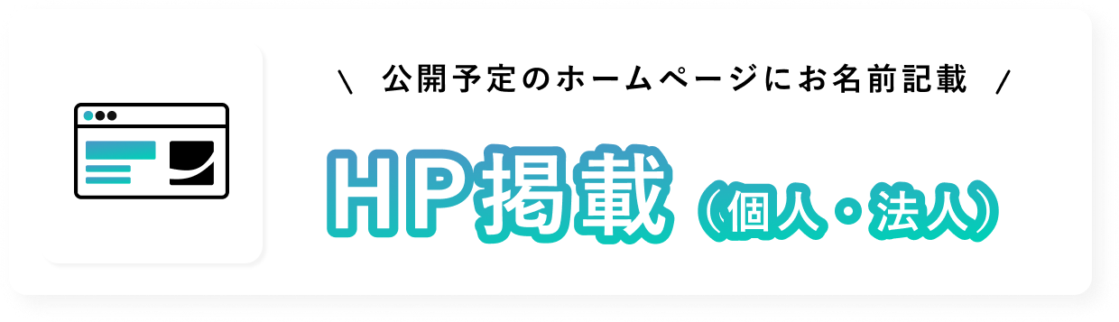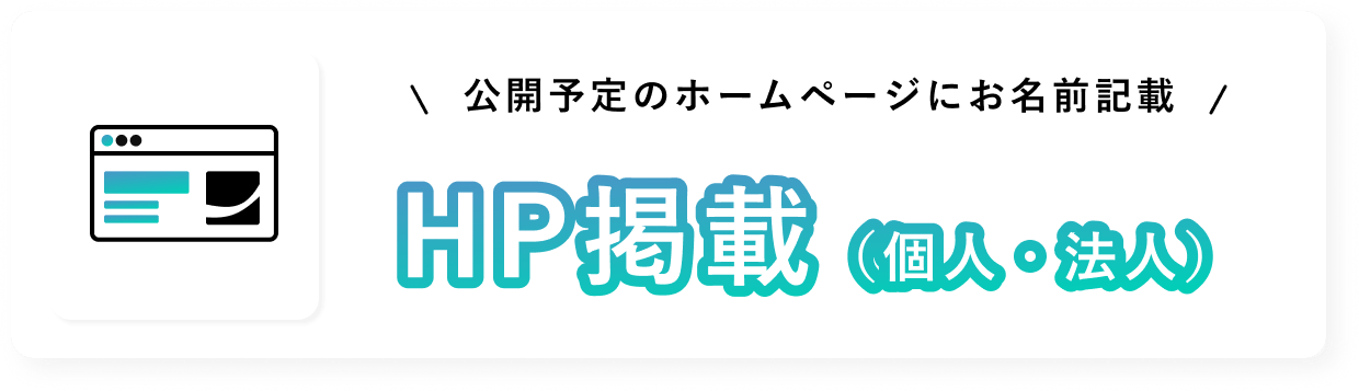 ・掲載方法:個人の場合は指定のお名前、法人の場合は「法人名」か「法人ロゴ」の一方を掲載