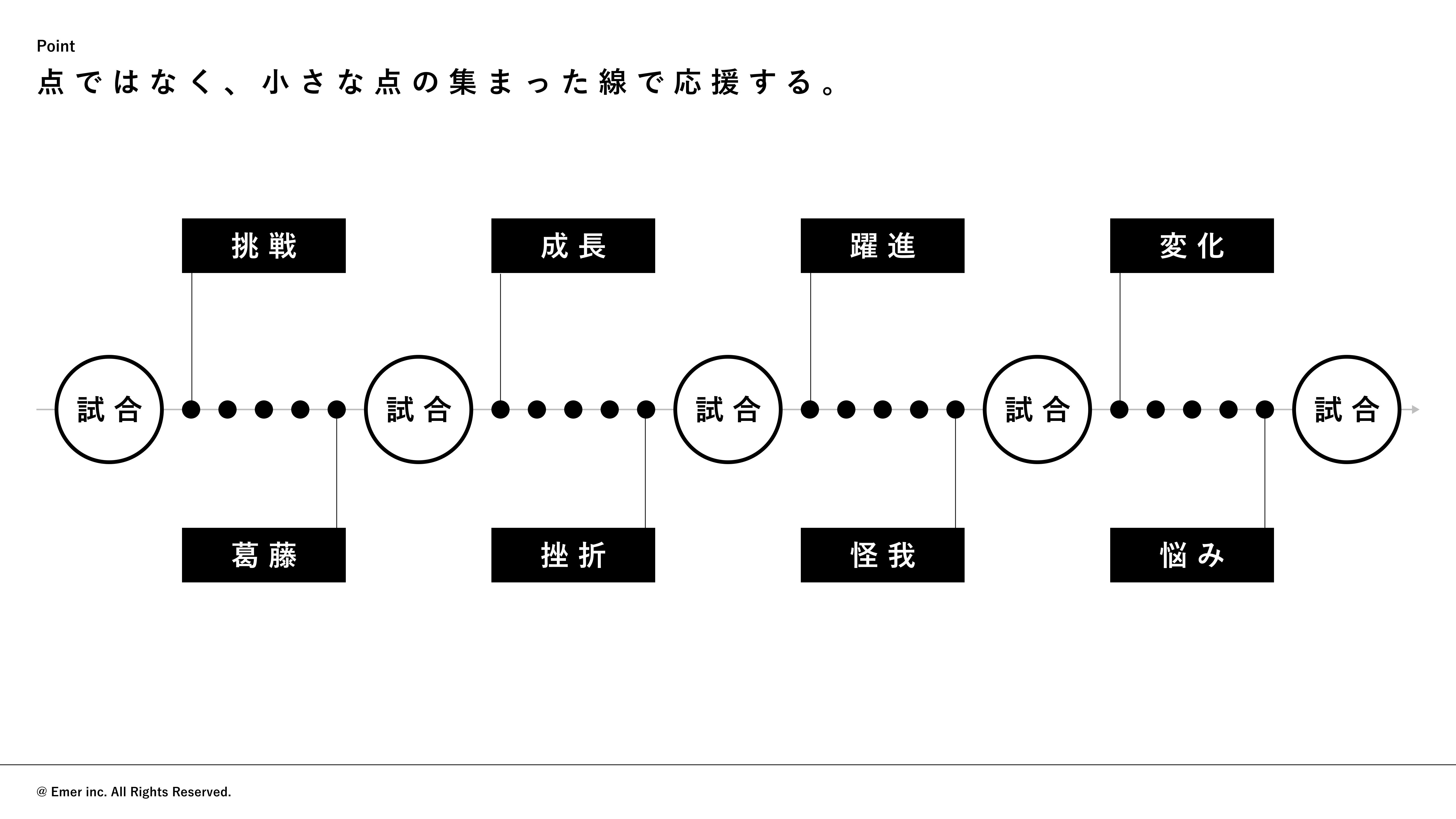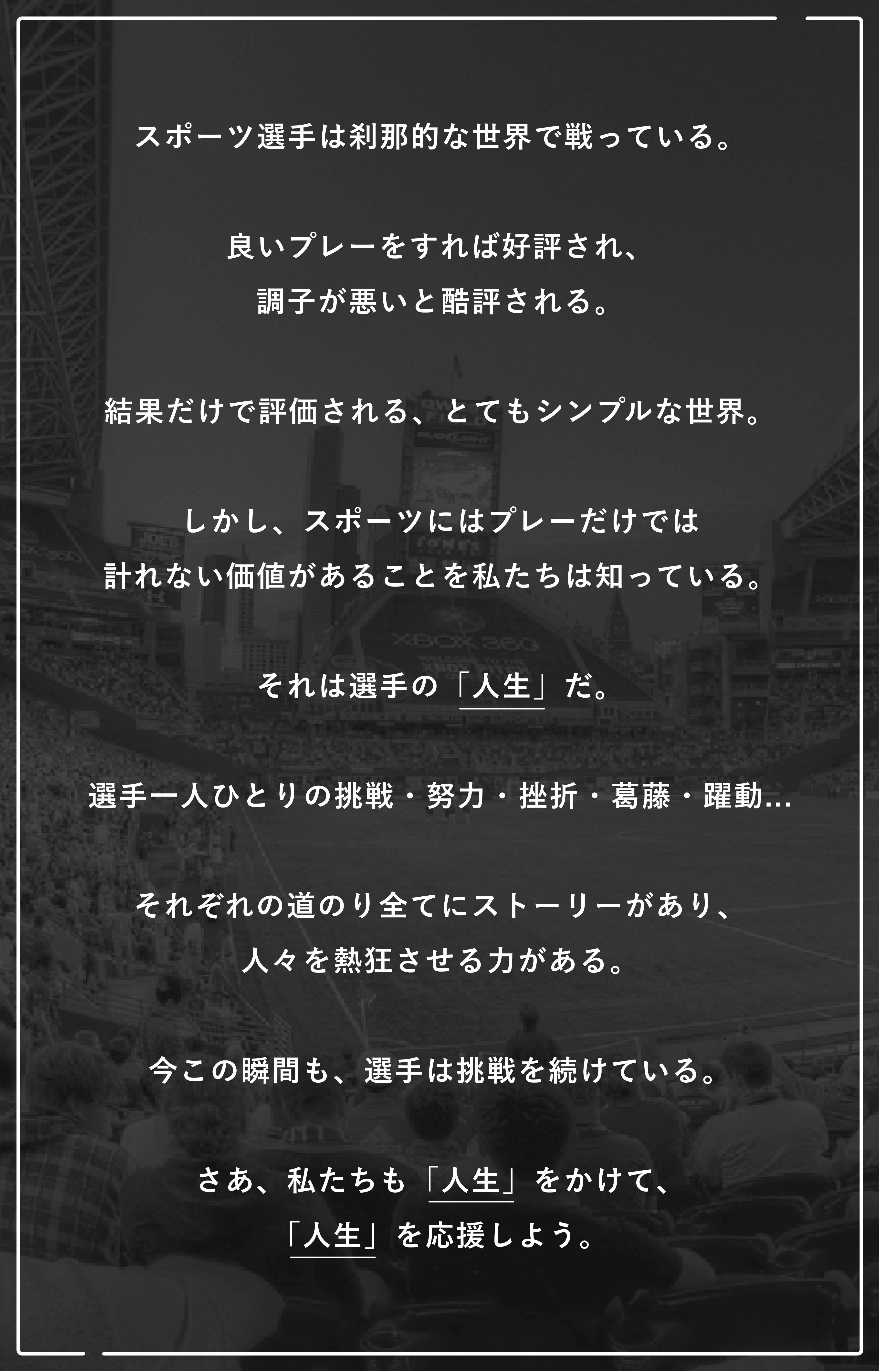 「選手ひとり一人にはそれぞれの人生があり、日々懸命に生きている。選手のストイックな日常や内面の移り変わりを開示してもらい、サポーターがそれを受け取れる場所ができれば、“挑戦と応援の連鎖”が生まれ、スポーツ業界に新しい熱狂をつくりだすことができるのではないか」