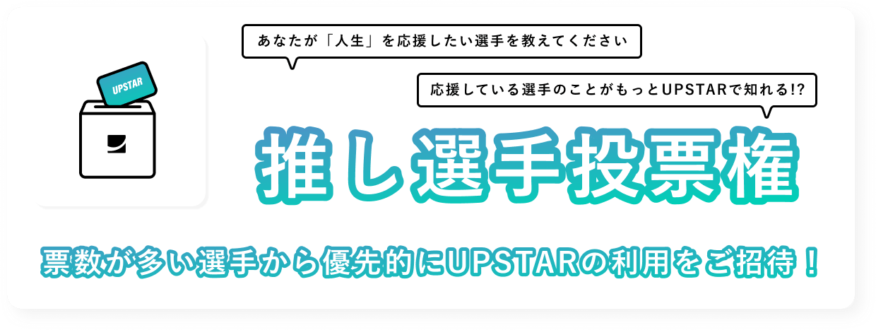 ②全投票を集計し、上位選手から優先的にUPSTARのご利用を案内します。