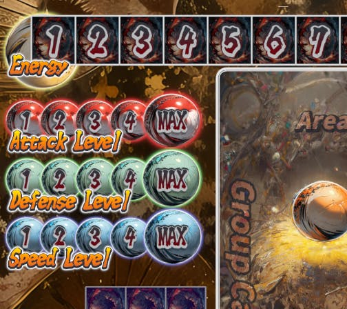 プレイヤーボードの一部画像になります。上から体力、攻撃レベル、防御レベル、敏捷レベルが表示されています。