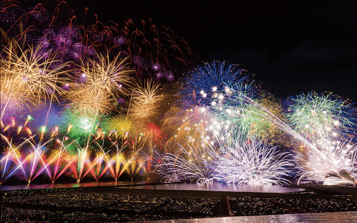 そして明日26日は、海の大花火大会。約16,000発が海上で打ち上がるので、海面がキラキラして美しさ倍増。ワイドスターマインは、海面と空中の2面で見ることができるので大迫力なんです。