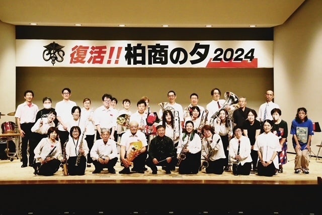 演奏者の柏商卒業生は40歳から76歳までの16人。足りないパートはご家族や柏崎市吹奏楽団さんに助けてもらって総勢26人。全員そろったのは本番のみ。
