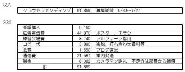 大変遅くなりましたが、クラウドファンディングの会計報告をさせていただきます。