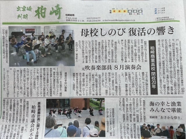 6月22日の地元新聞(新潟日報)で私たちの活動を紹介していただきました。その中で副部長が「一生懸命に演奏していることが伝われば嬉しい」とコメントしています。現役のメンバーはより精度の高い演奏を目指し、ブランクの長いメンバーは何とか食らいつこうとしています。その一生懸命を感じ取ってもらえるよう頑張りますので、ぜひご来場ください。