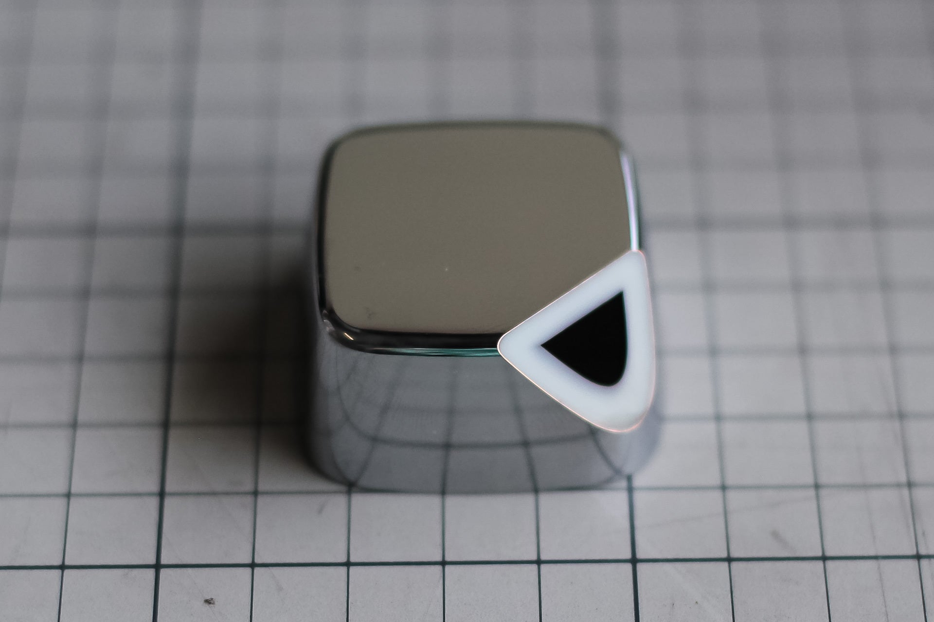 プラスチックへめっき処理を行ったテストピースを一部カットして、右手前に断面を露出。