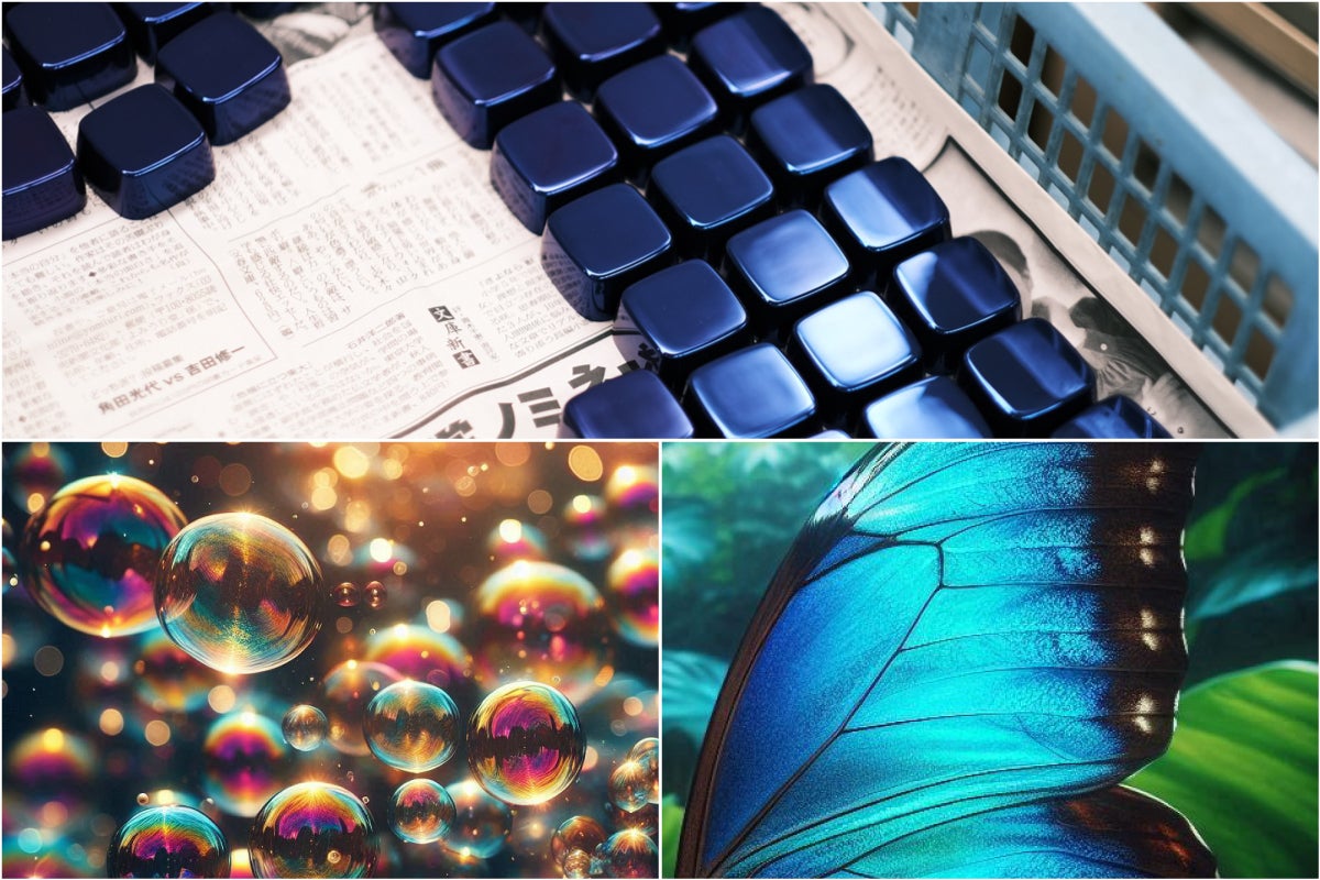 そして、実は「月光」のブルーは正確に言えば金属の色ではありません。かといって着色料などでもありません。これは「構造色」と呼ばれる発色メカニズム(モルフォ蝶の羽、シャボン玉の虹色などと同様)でめっき表面に「酸化皮膜」というものをつくりだしています。この酸化被膜に微細な凹凸構造が形成されて、そこに光が当たった際の屈折率によってこの色に見えています。