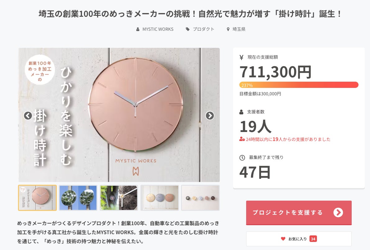 こんばんは。本日11:00より公開しました今回のプロジェクトですが、公開初日に目標金額を達成しました!ご支援者の皆様には祝日ということでお休みの方も多くいらっしゃったかと思いますが、その中でご支援の対応をいただけましたこと大変嬉しく思います!おかげさまでCAMPFIRE内での人気のプロジェクト検索での1ページ目にも載ることができています!残り47日まだまだ多くの方に届けられるよう頑張りますので応援をよろしくお願いします!今後の活動報告ではプロジェクト公開までの裏話などをお届けできたらと思っておりますので引き続きお見守りいただければと思います!