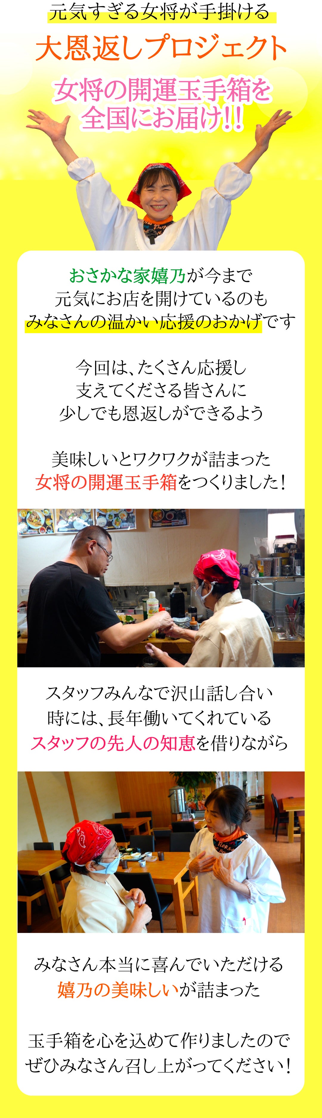女将の開運玉手箱を食べていただけると嬉しいです。