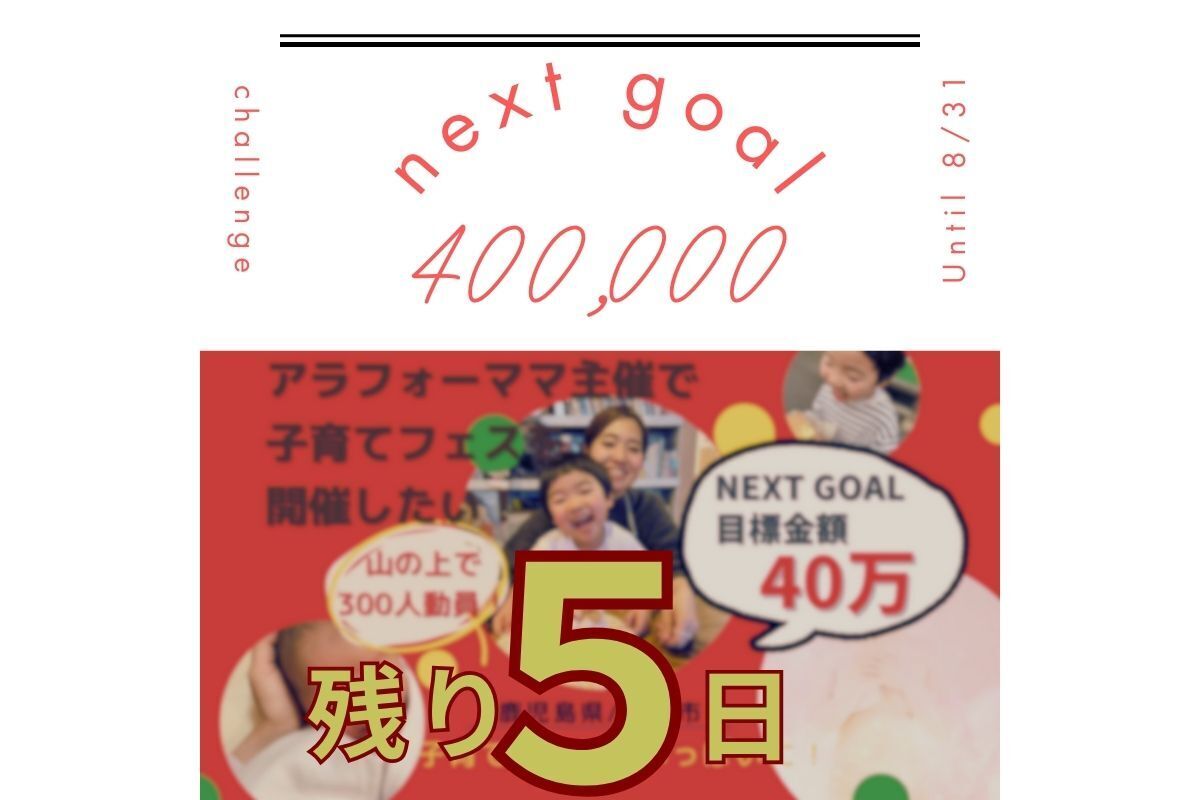 クラファン終了まで残り4日おはようございます!クラファン終了まで残り4日と15時間になりました。よくいただく質問や問い合わせが、・ログインできない&パスワードがわからない・リターンの購入方法がわからない・”お気に入り♡”がわからない・Instagramでシェアしたいけど、やり方がわからないです。全て解決できますので、『?』が出てきましたら、なんでもお気軽にお問い合わせいただけると嬉しいです!CAMPFIREのメール機能でもいいですし、直接メールをいただいてもOKです。kirishimastyle01@gmail.com-いわいあや-*******************************************************************************************◻︎リターンについて・リターンは1人が複数の購入可能です・すでにご購入済でご支援いただいた方の再度の追加購入可能です・限定リターンは数量が残りわずかとなっています◻︎子育てフェス本番について・参加費:無料・参加方法:事前予約制※人数に達し次第締め切らせていただきます子育てフェス参加フォーム↓参加費無料・完全予約制