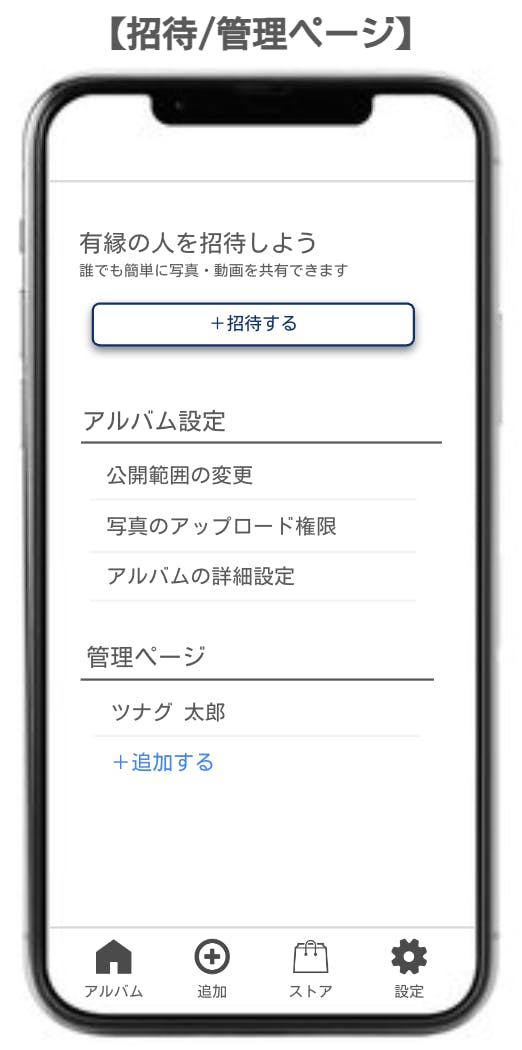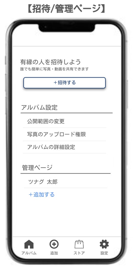2、管理画面の「招待ボタン」から写真を共有したい方へ招待することができます。