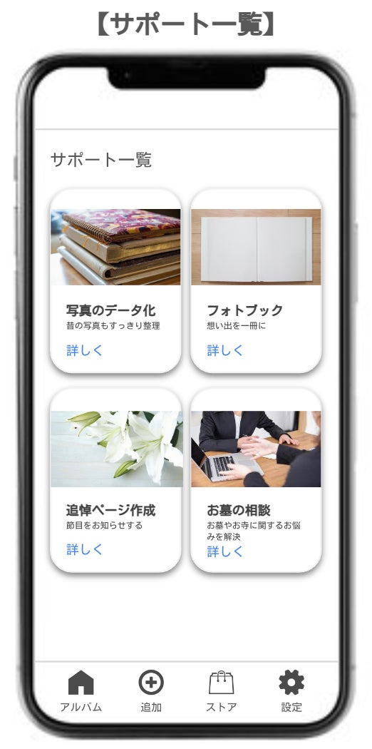 4、サポートページより、オフライン写真のデータ化依頼やアプリ内データのアルバム化が運営事務局へ依頼可能となっております。