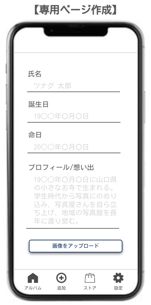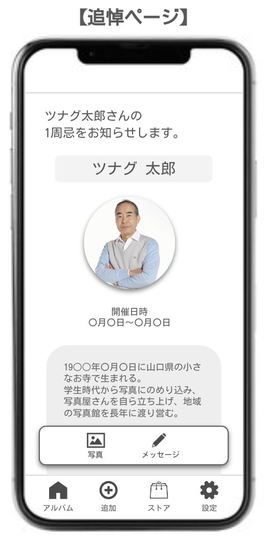 メインをスマートフォンのアプリとし、故人や亡くなったペットとの思い出を簡単に共有・保存できるようにサービス化させます。
