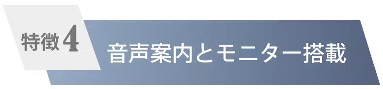- 4)音声案内とモニター搭載 : 操作が直感的で使いやすい音声ガイダンスとモニター搭載。