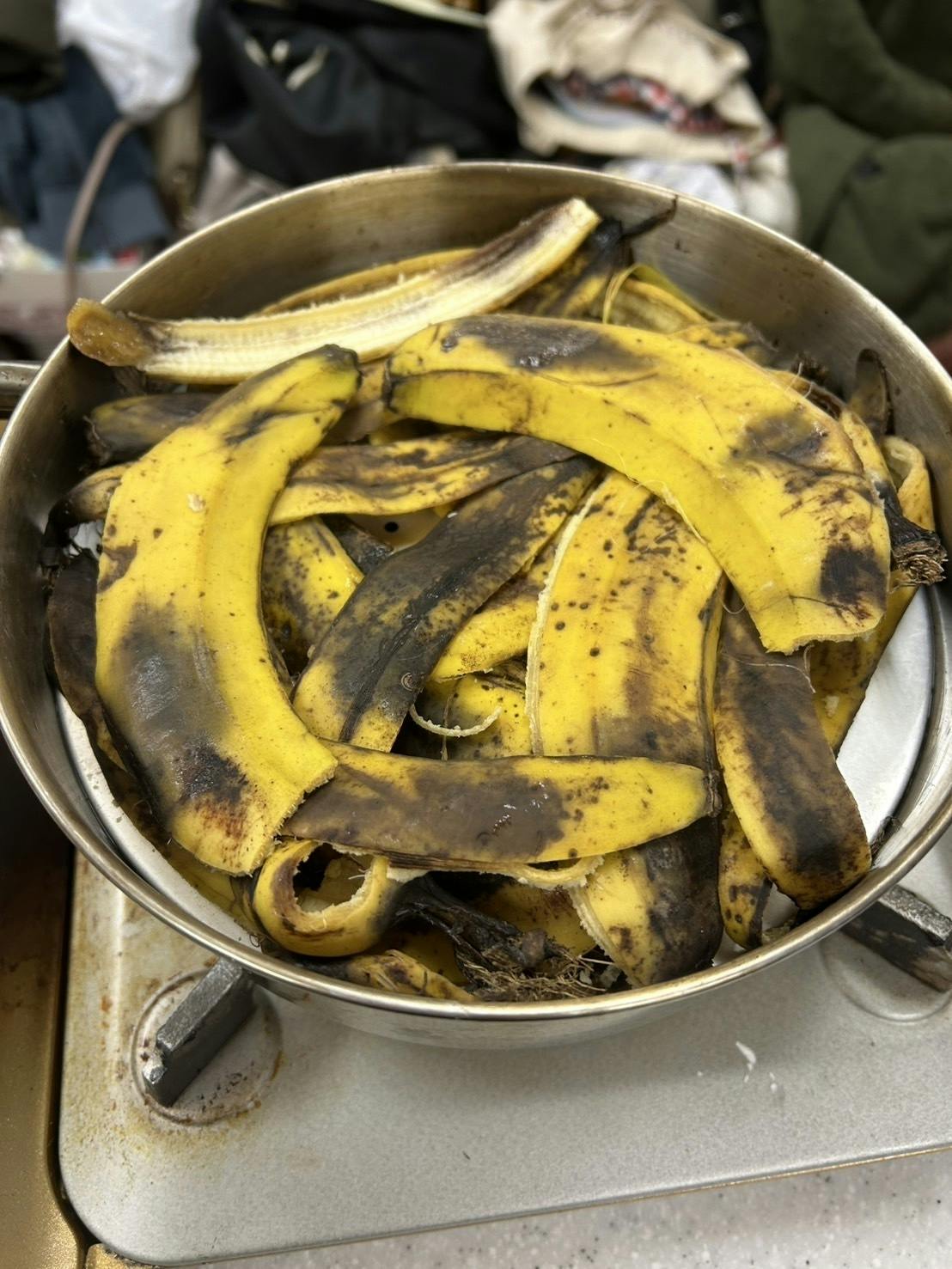 バナナの皮を熱して、バナナの皮の香りを含んだ水分を抽出。