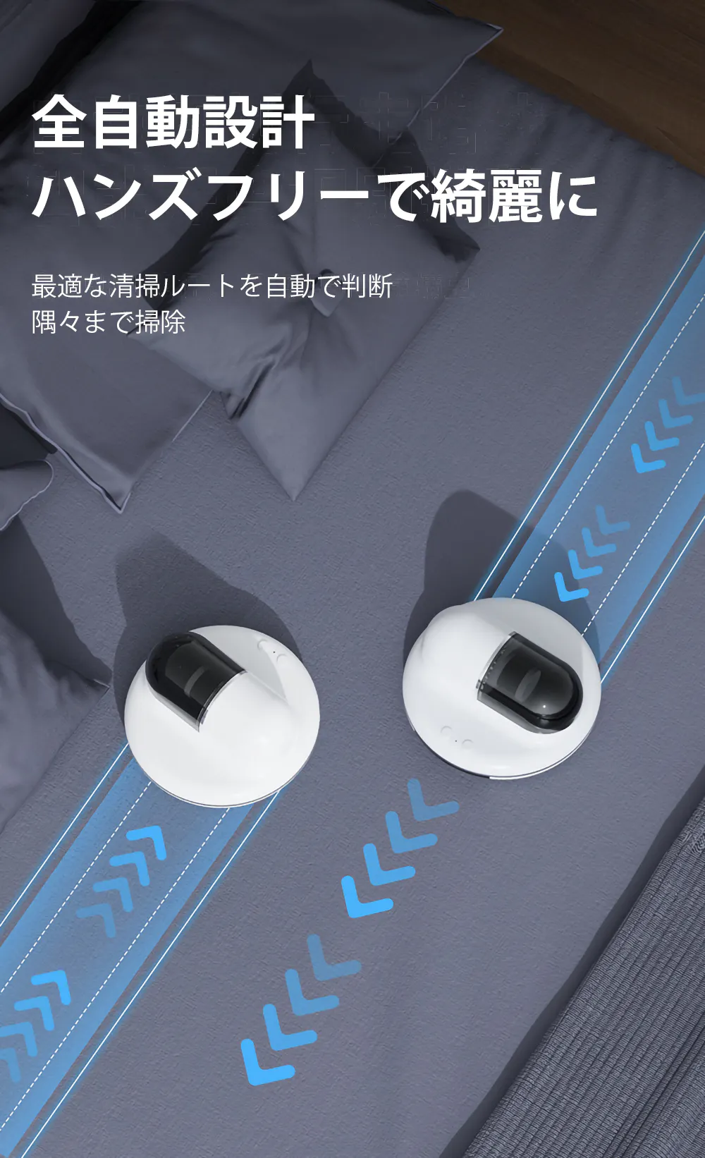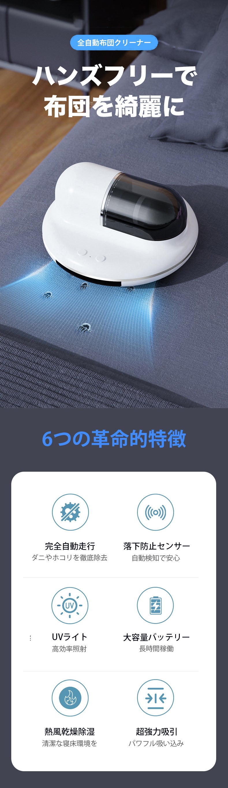 本製品は完全自動で布団・ベッドを綺麗にすることができ、寝室の掃除を今まで以上に快適なものにします。