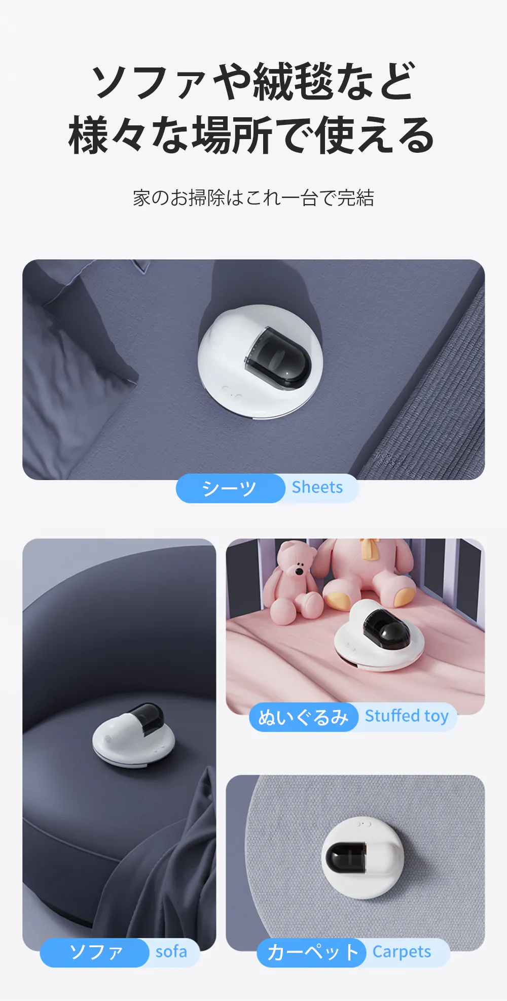 布団とベッドだけではなく、ソファやカーペットなど様々な場所で使用できます。