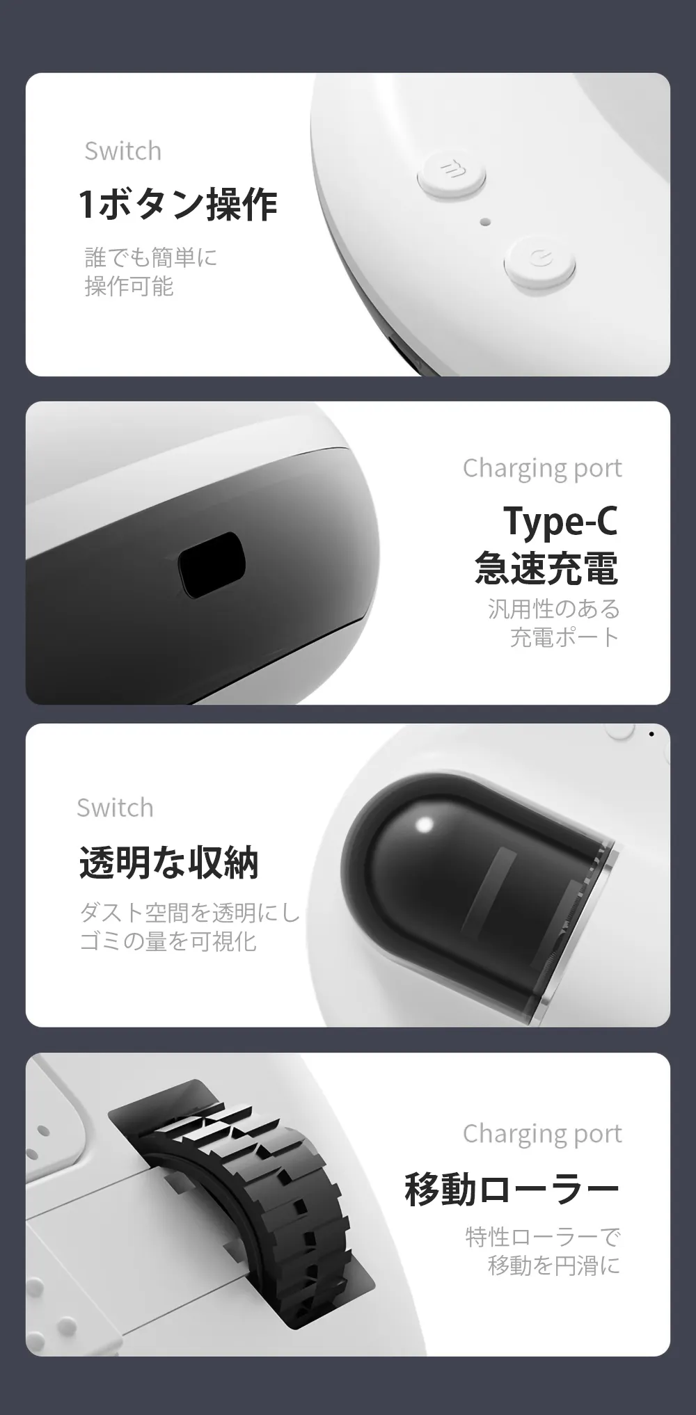 ダストボックスは250mLの大容量となっているため、頻繁にゴミを捨てる必要がありません。