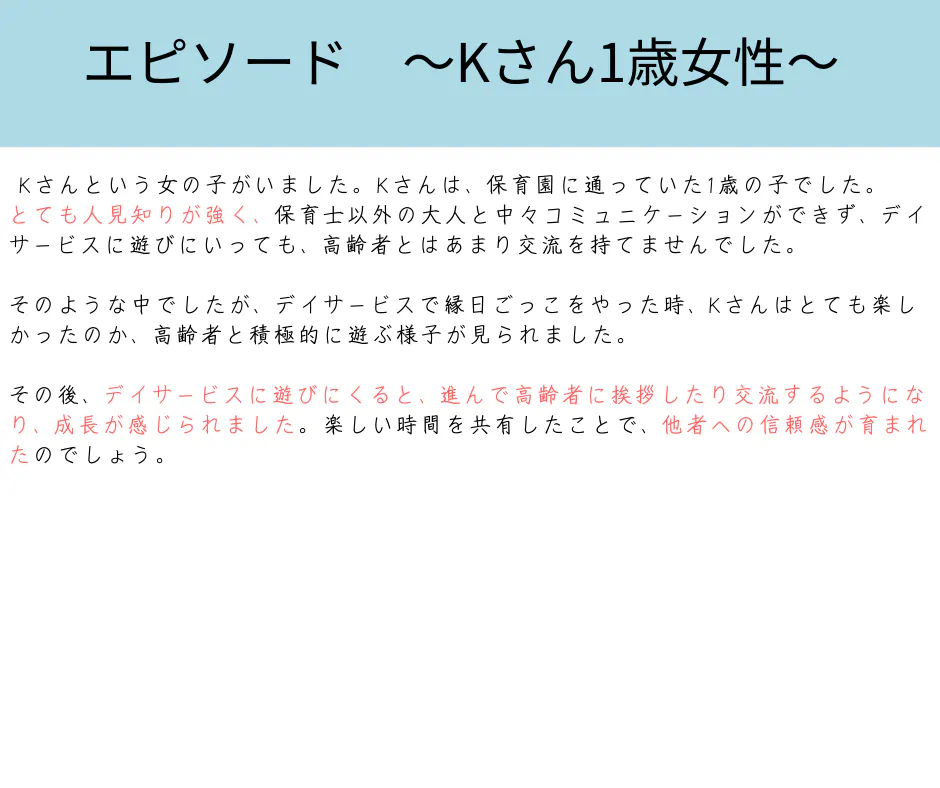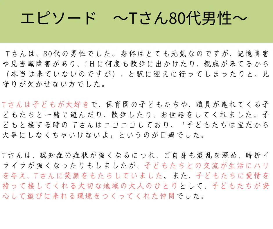 子どもにとっても、世代間交流がより良い育ちに繋がる、という実感も私たちは持っています。