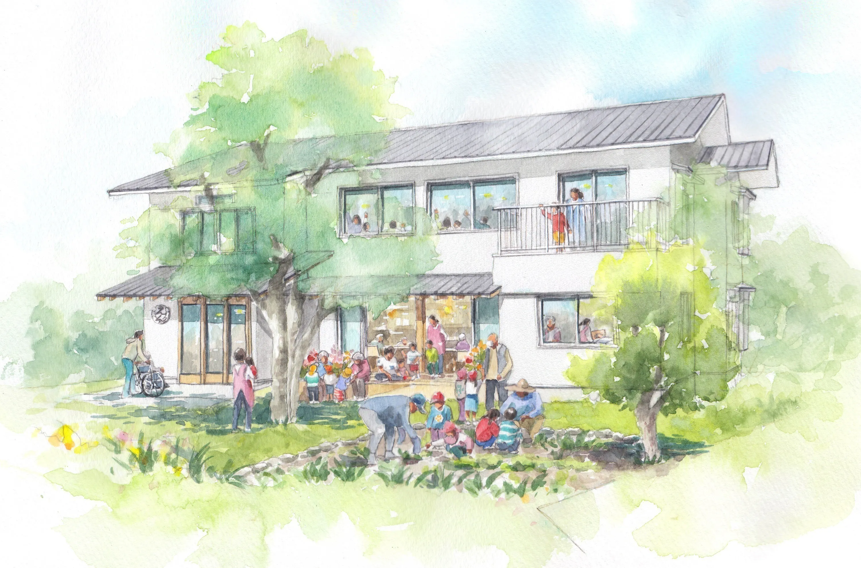 完成イメージ。1階はデイサービス。2階は子どもの居場所となります。