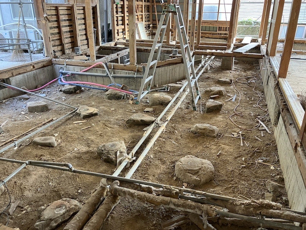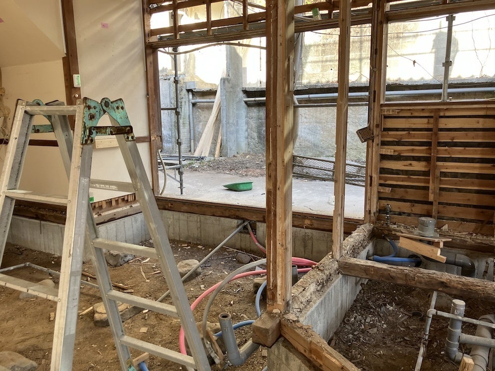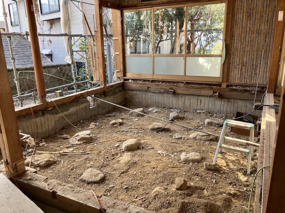 昭和30年代の木造建築で、基礎は鉄筋コンクリートが入っておらず、束石が使われていました。