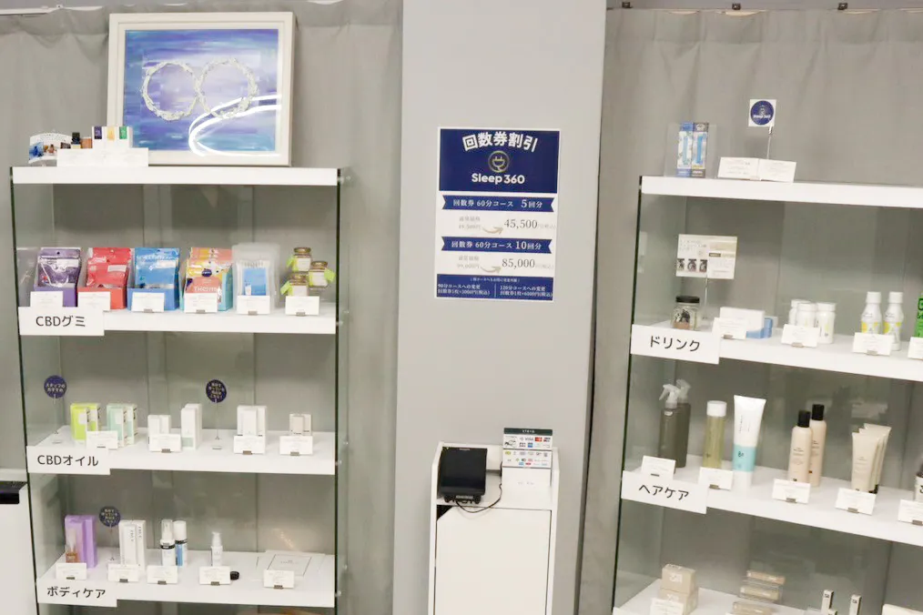 「日本の睡眠をよくしたい!」という想いを込め、睡眠改善への効果が期待されるCBDをふんだんに使用した施術メニューとセレクトショップ並の商品ラインナップを取り揃えております。